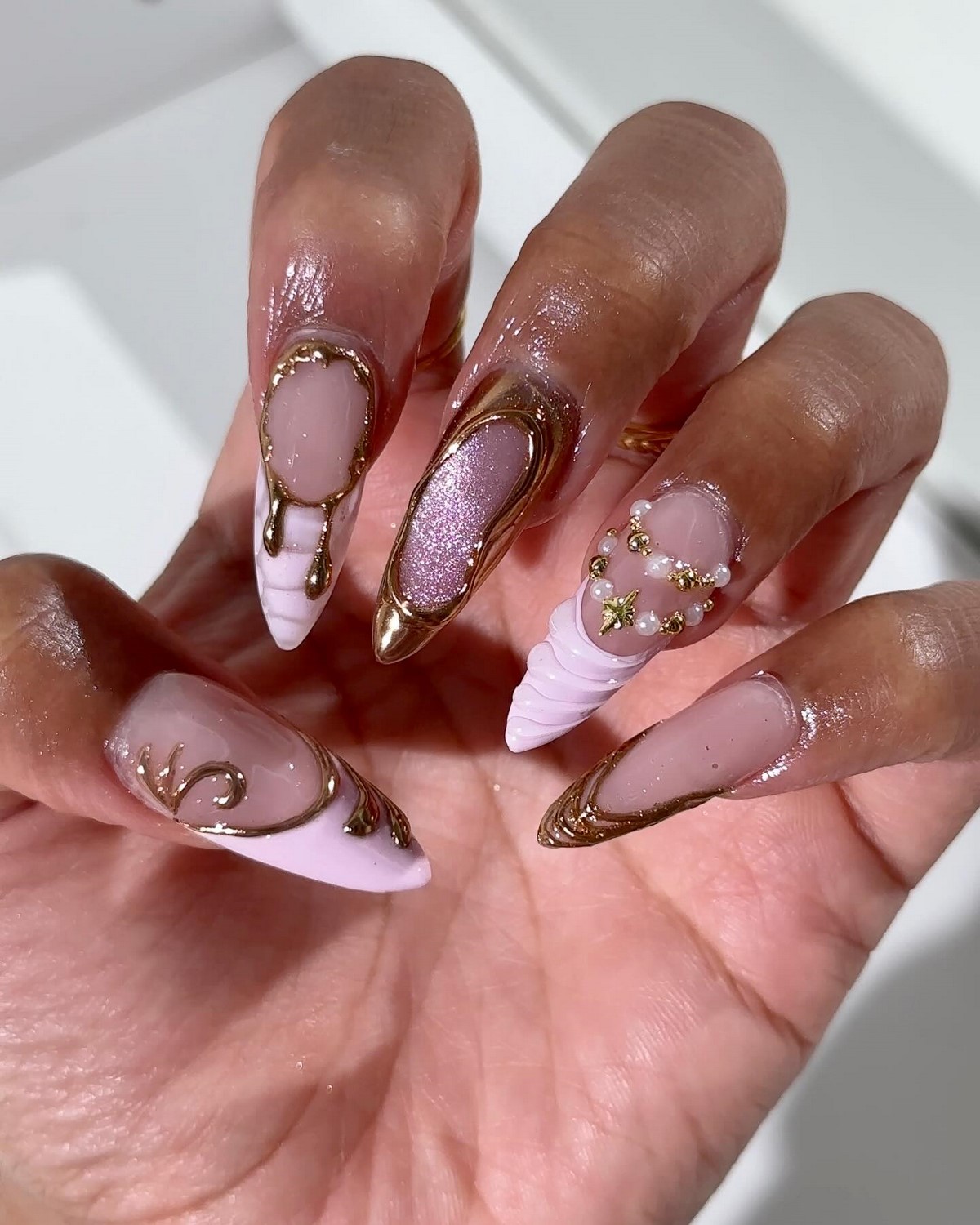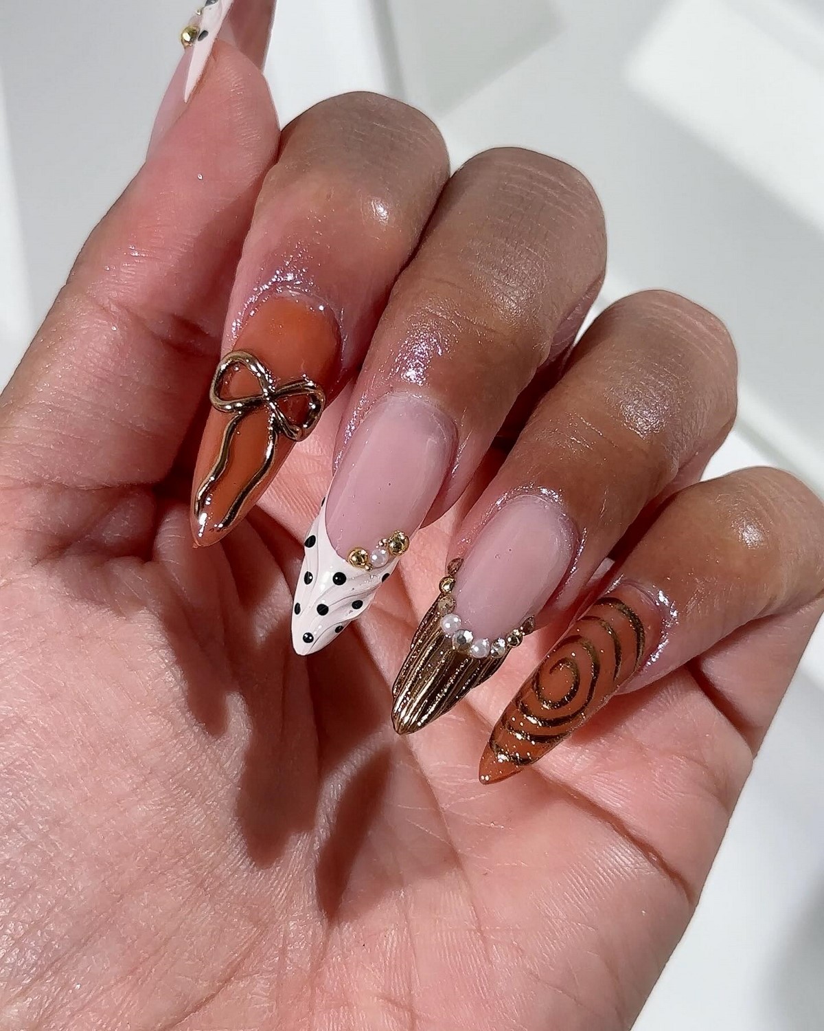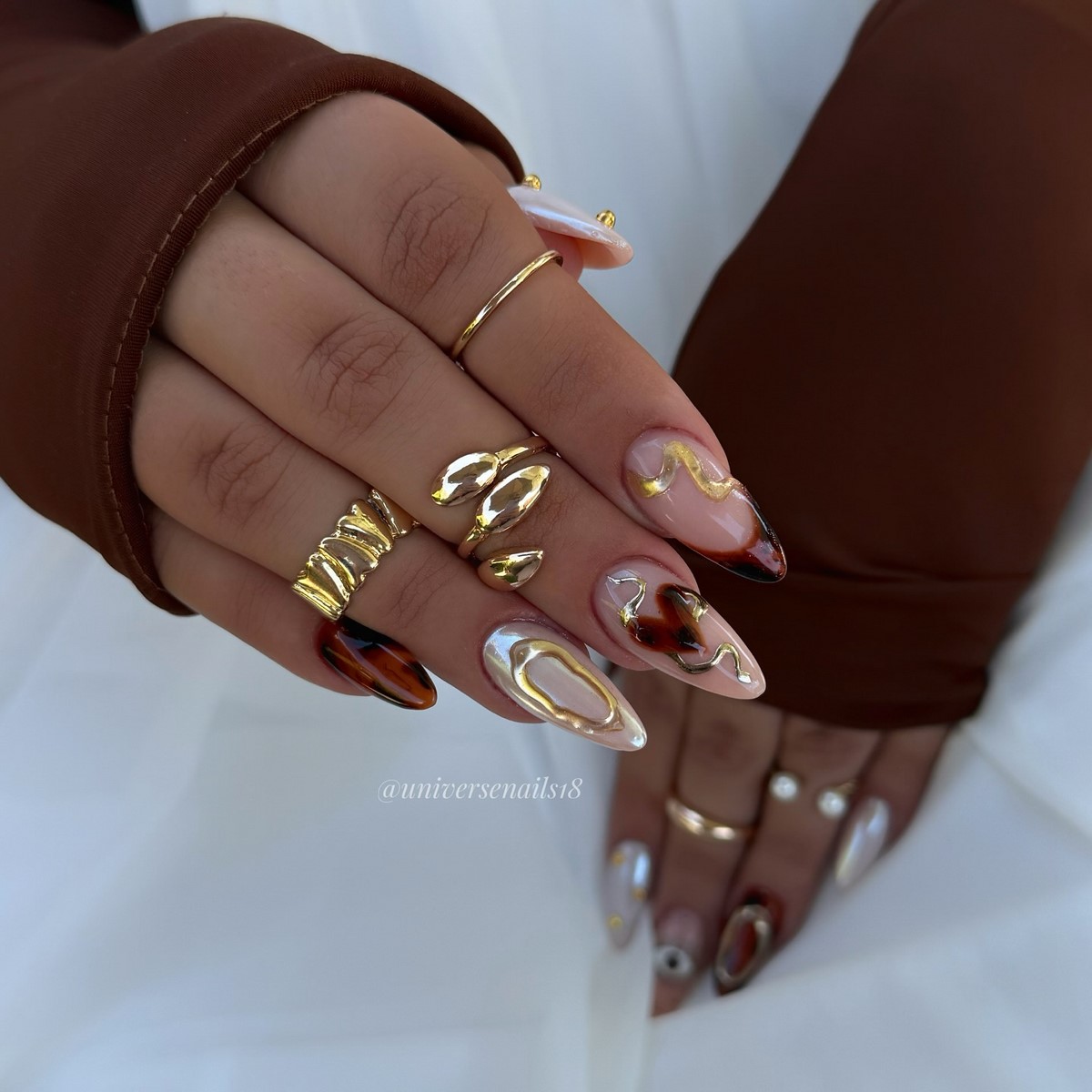 Асимметричный подход, когда дизайн на левой руке отличается от правой, но дополняет общую концепцию, становится трендом сезона. Популярно сочетание противоположностей: матовых и глянцевых текстур, темных и светлых оттенков, сложного и простого декора. Такой маникюр позволяет проявить креативность и создать действительно индивидуальный образ, отражающий многогранность личности.