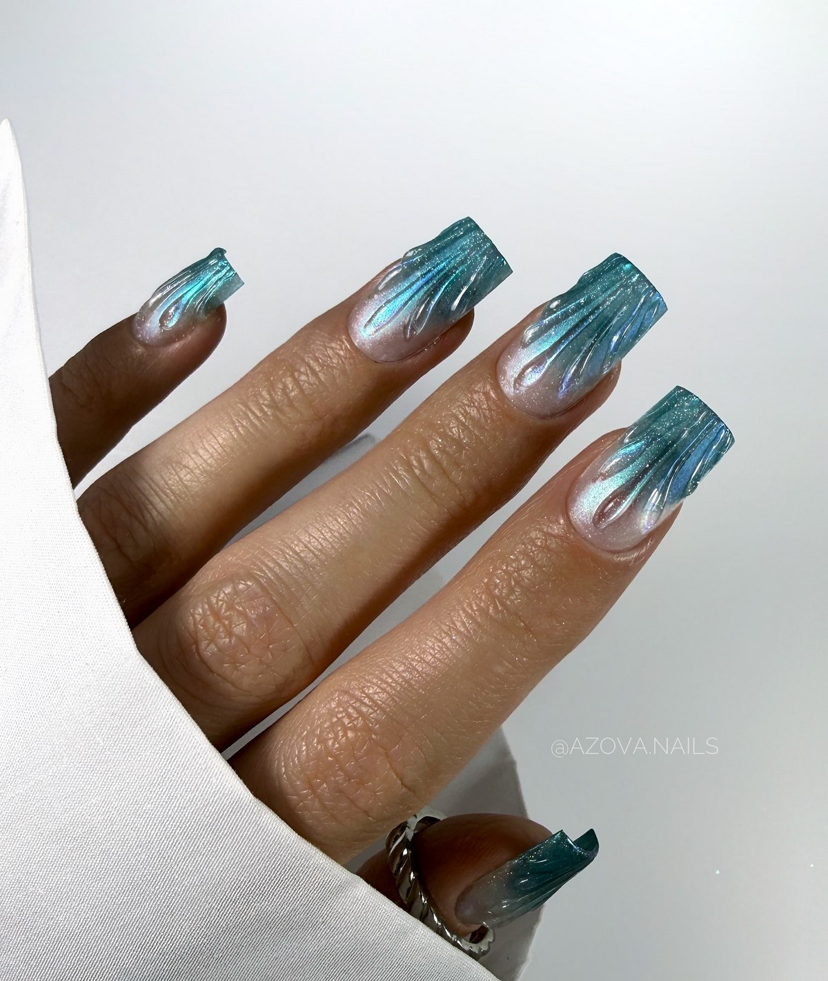 Градиентный маникюр в декабре 2025 трансформируется в настоящее световое шоу благодаря использованию шиммерных и голографических пигментов. Техника омбре переходит от насыщенных зимних оттенков к прозрачным кончикам или, наоборот, создает эффект сияния от основания ногтя. Особенно актуальны градиенты в холодной гамме: от глубокого синего к ледяному голубому, от сливового к розовому кварцу.