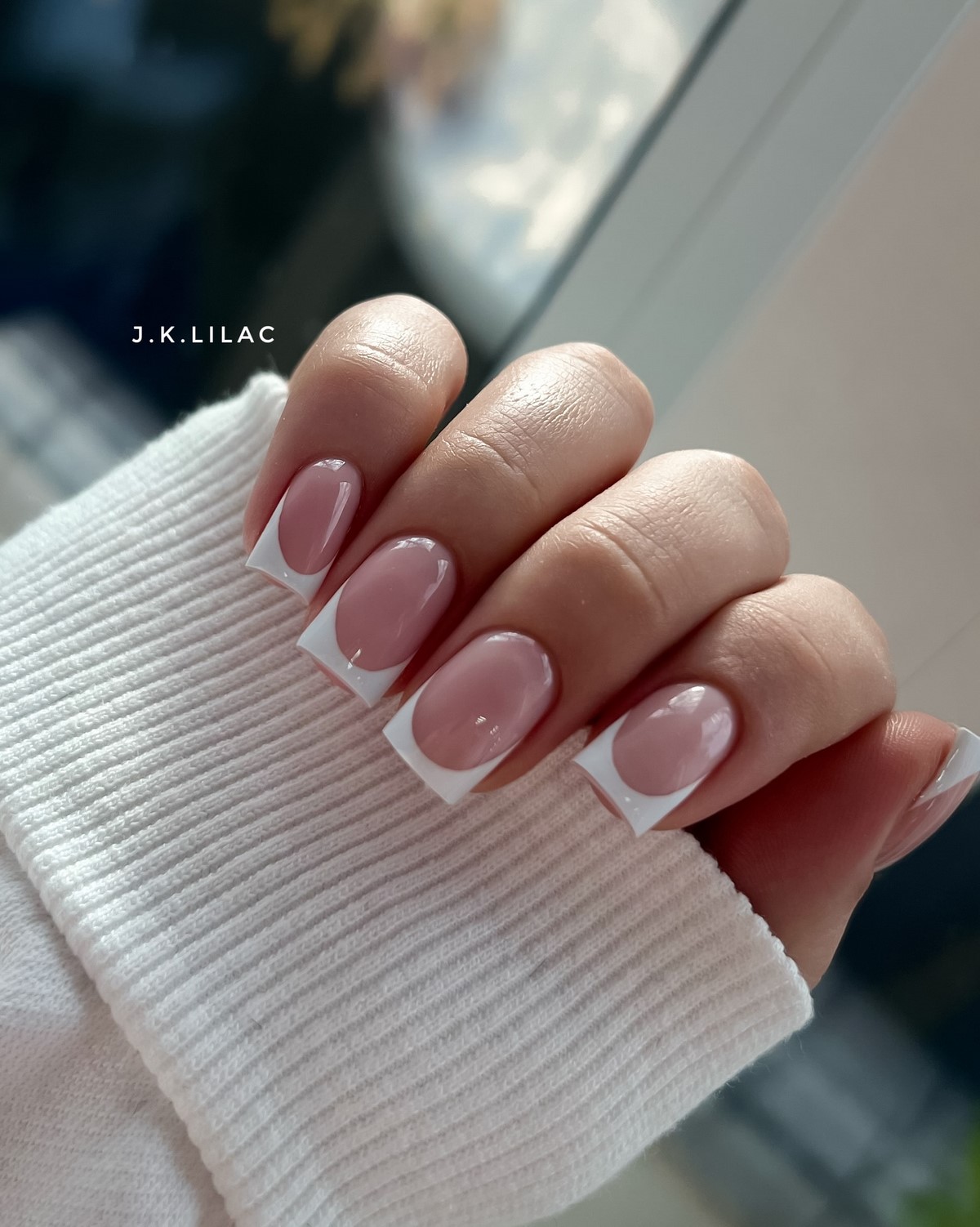Зимняя версия френча часто дополняется тонкими блестящими линиями, создающими эффект инея на границе цветов. Геометрический френч с острыми углами или волнистыми линиями добавляет современности классическому дизайну. Матовый топ на основном ногте в сочетании с глянцевым френчем создает элегантный контраст, идеально подходящий для деловых и вечерних образов.