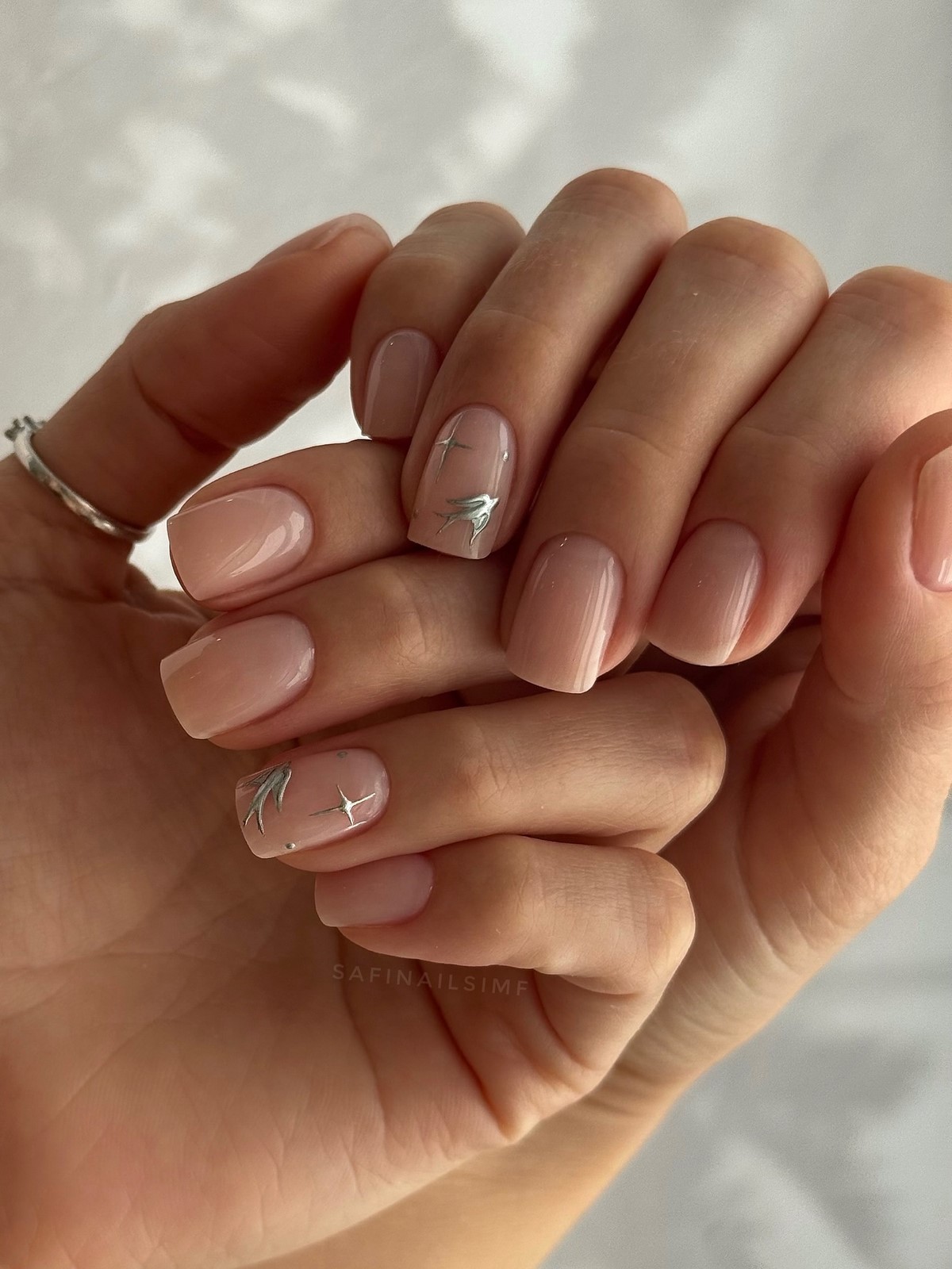 Минималистичный маникюр декабря 2025 доказывает, что элегантность не требует избытка декора. Чистые линии, геометрические формы, точечные акценты на нюдовой или пастельной базе создают изысканный и современный образ. Популярны тонкие золотые или серебряные полоски, образующие абстрактные узоры, или единичные стразы, размещенные у основания ногтя.