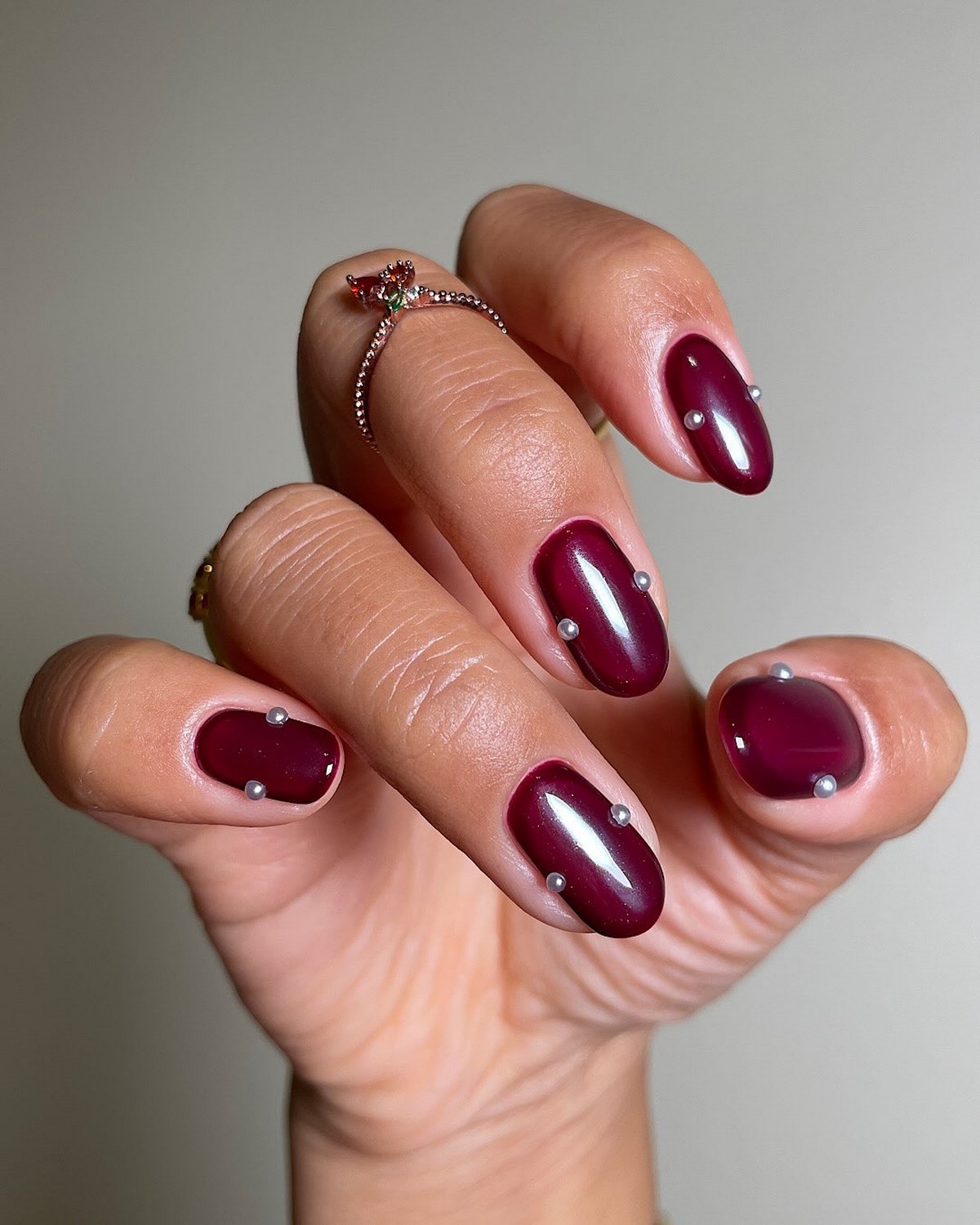 Бусины добавляют объем и текстуру маникюру, превращая его в трехмерное произведение искусства. Жемчужные бусины разных размеров выкладывают в виде абстрактных узоров или используют для создания нежных цветочных композиций. Для декабря идеально подходит сочетание матового покрытия с глянцевыми бусинами, создающее игру фактур и привлекающее внимание к рукам.