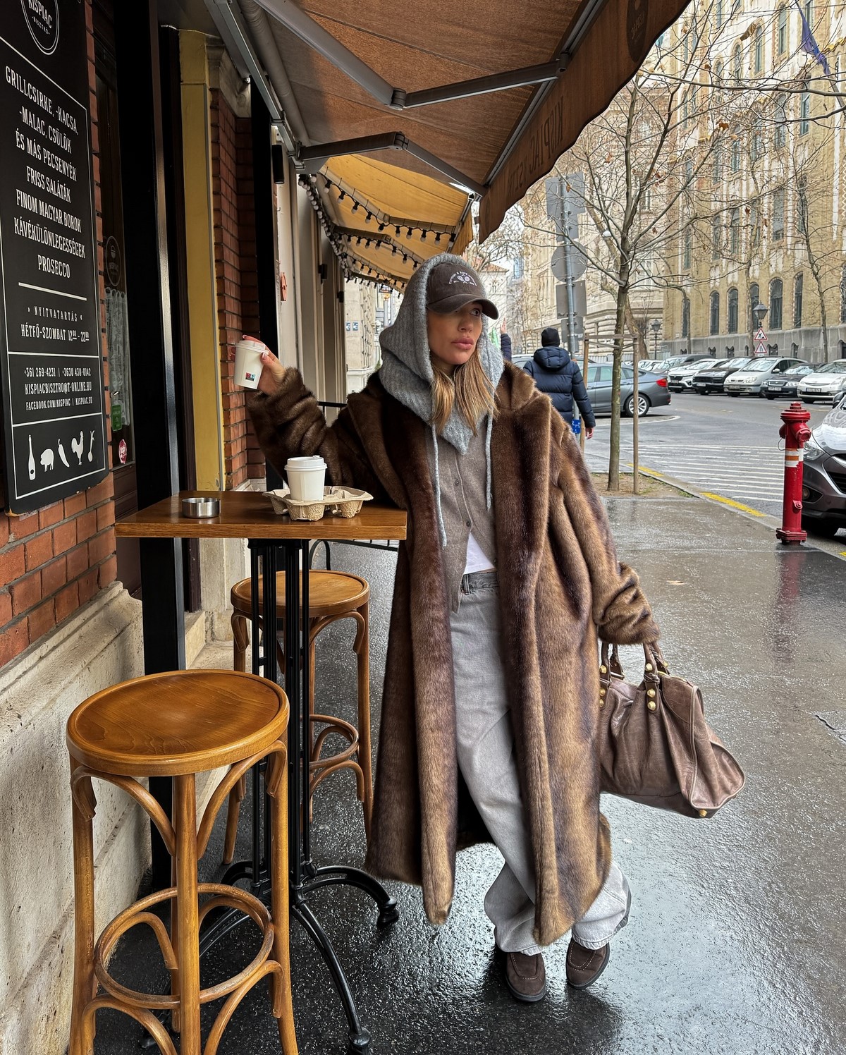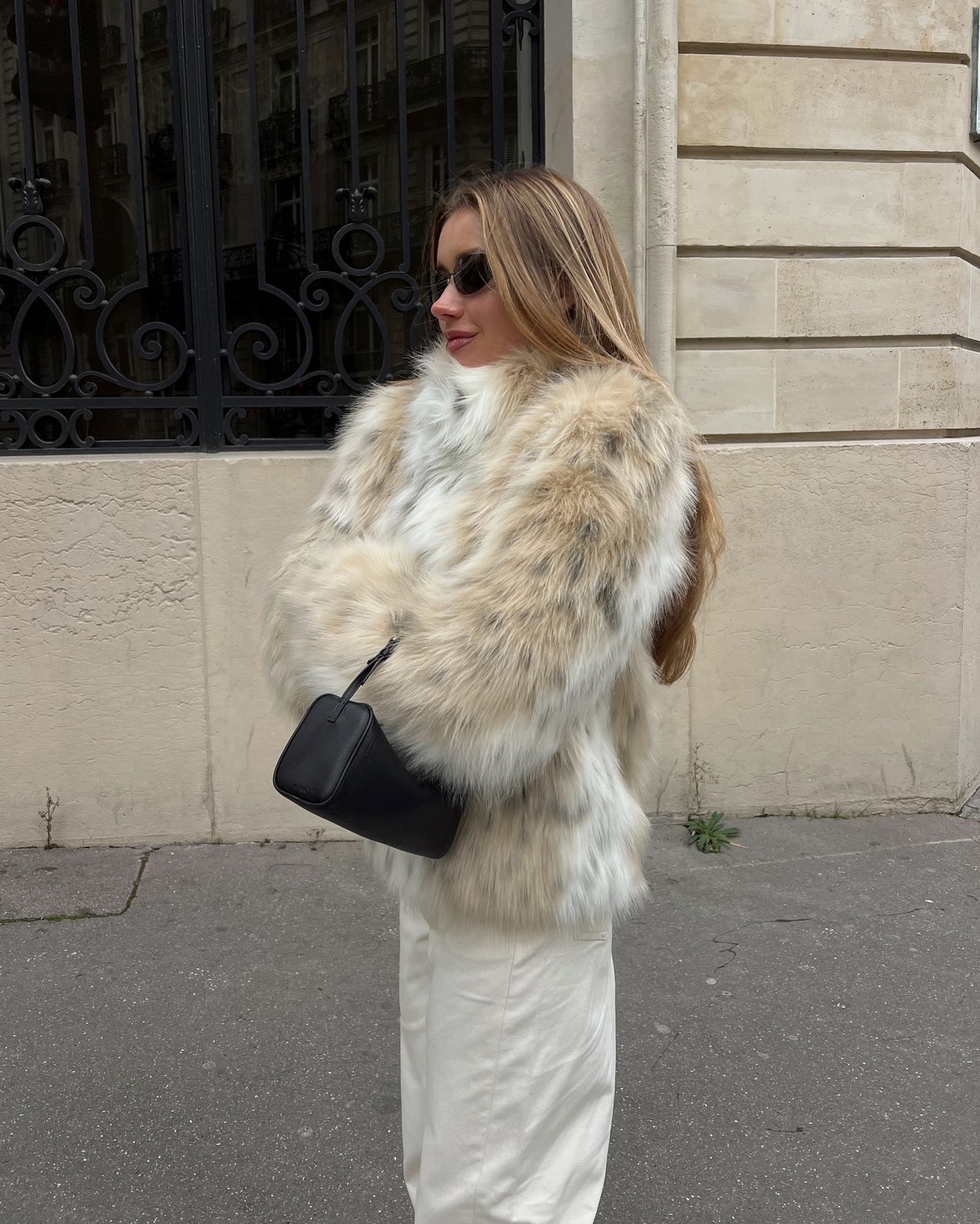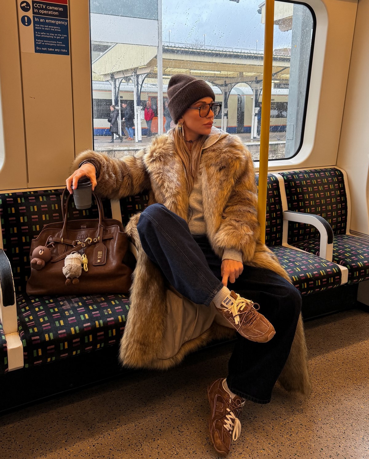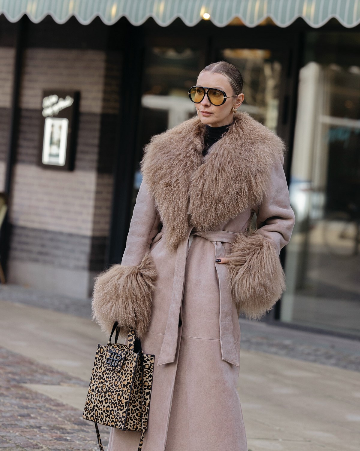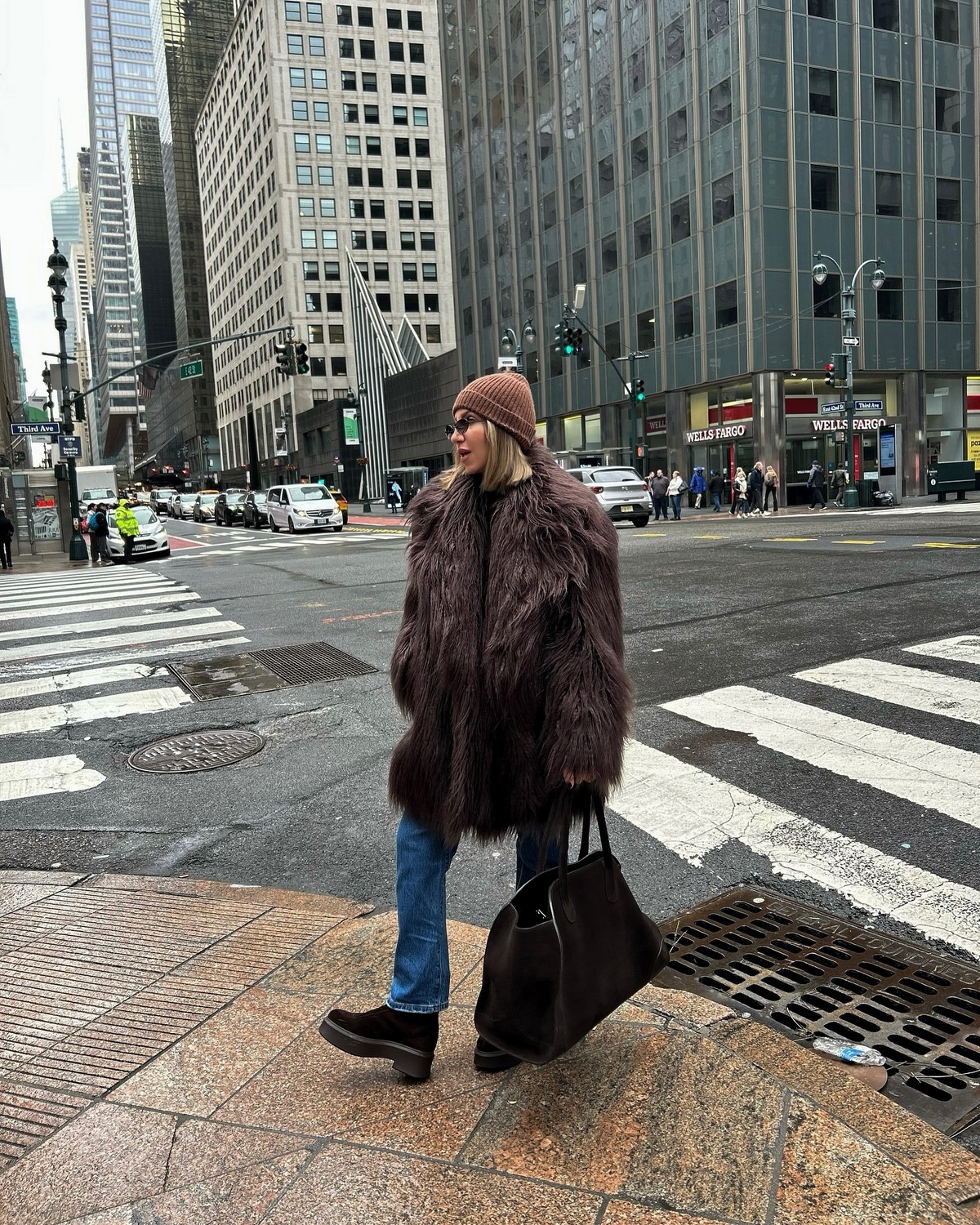 - Фактуры: кожа, замша, деним с эффектом потертости, мех — как натуральный, так и искусственный. Популярна многослойность с разными текстурами.