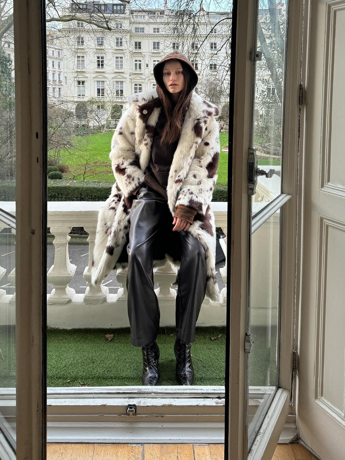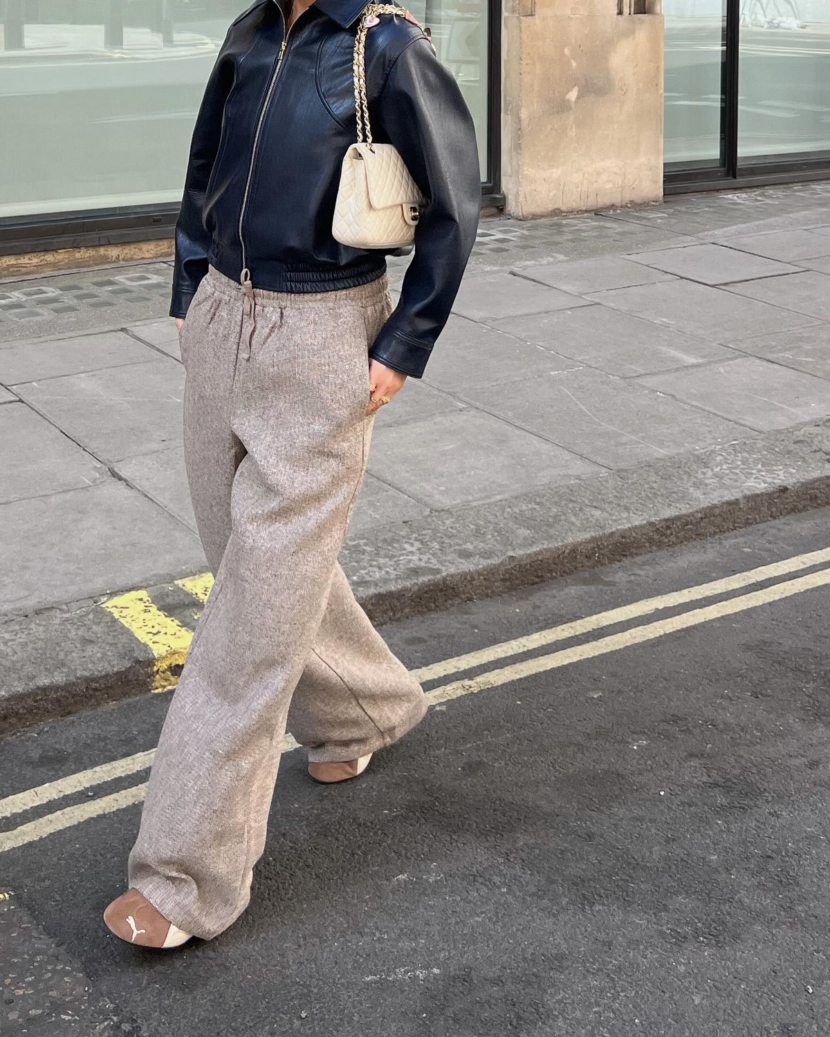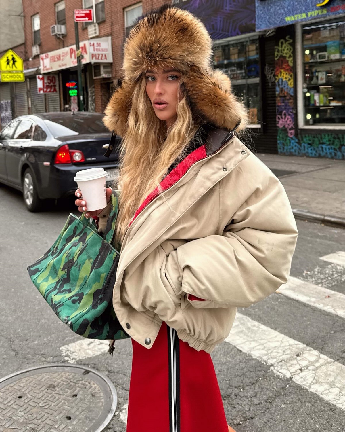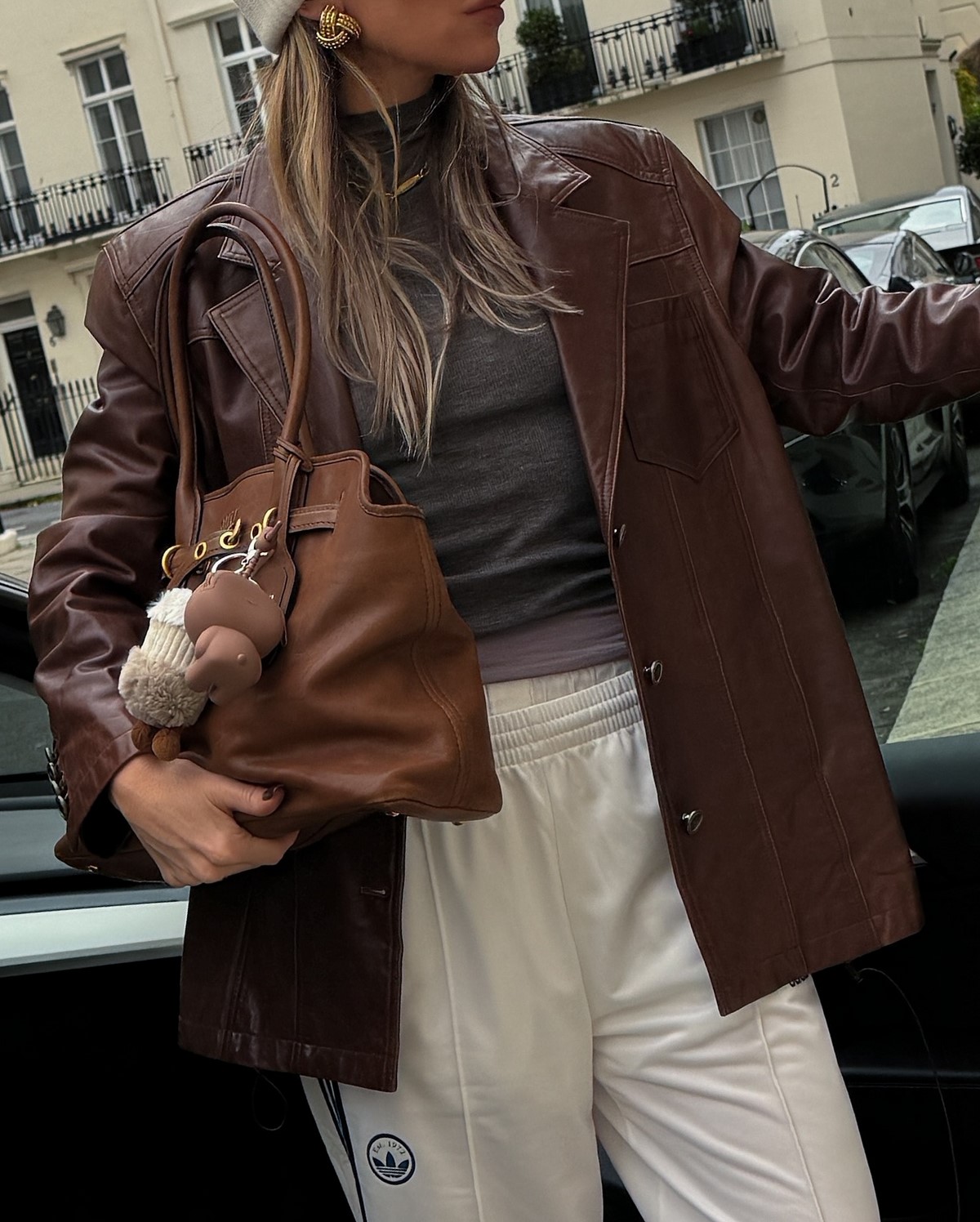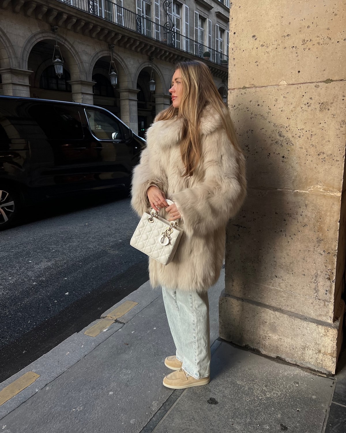 - Фактуры: кожа, замша, деним с эффектом потертости, мех — как натуральный, так и искусственный. Популярна многослойность с разными текстурами.