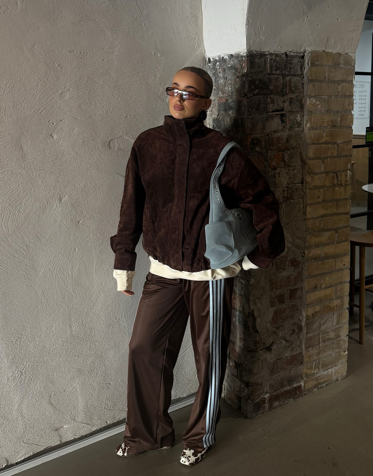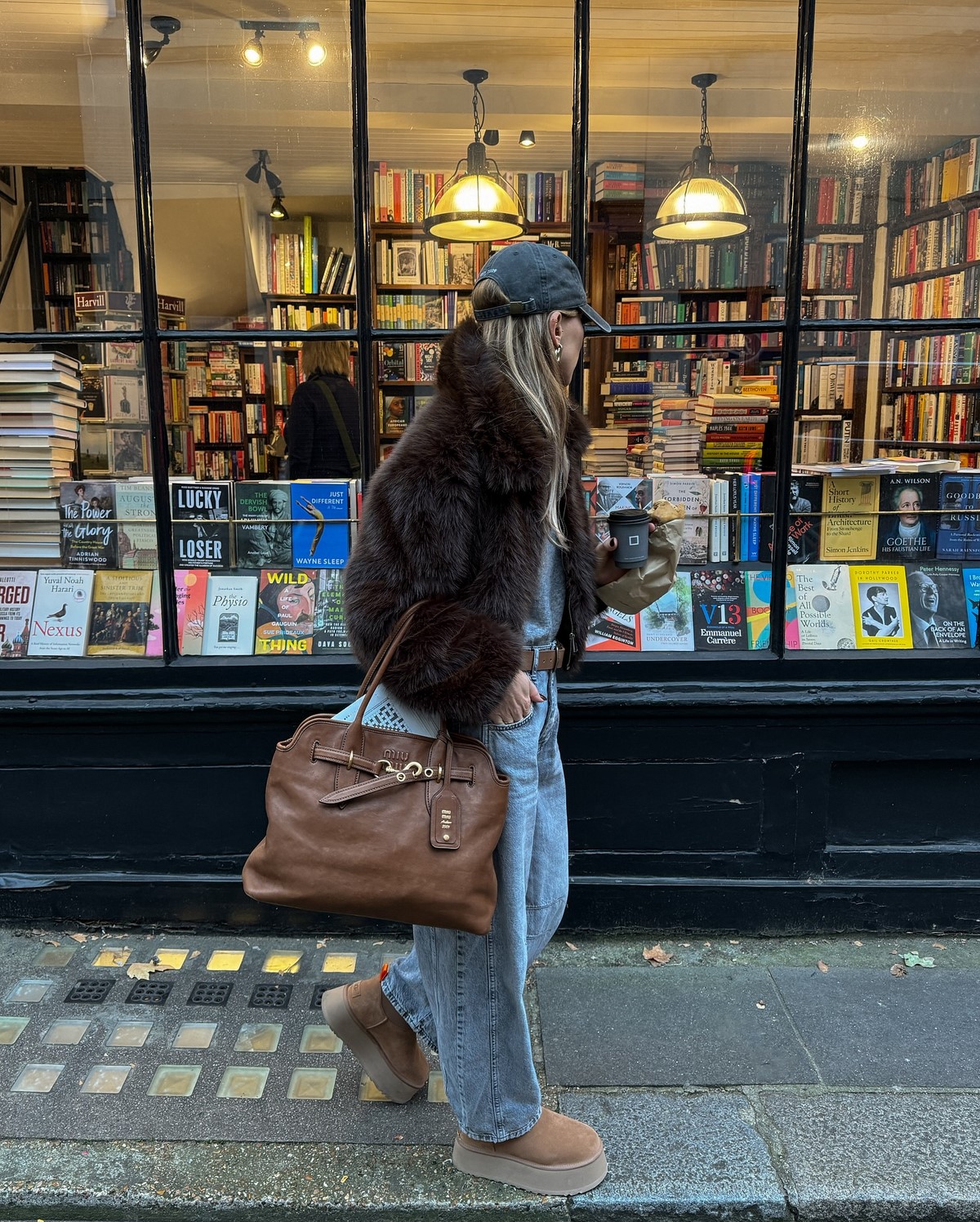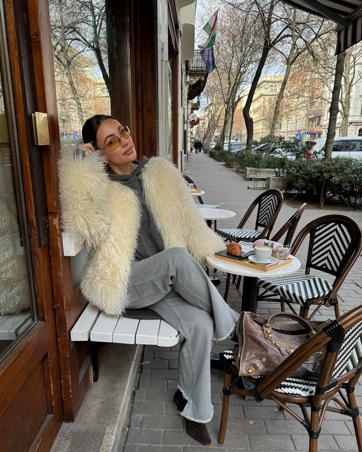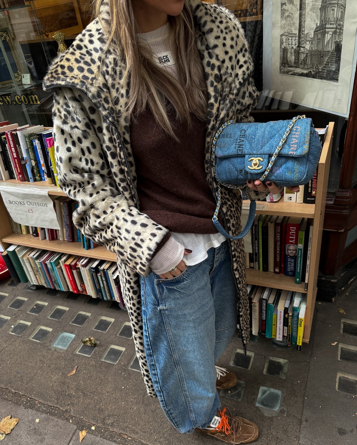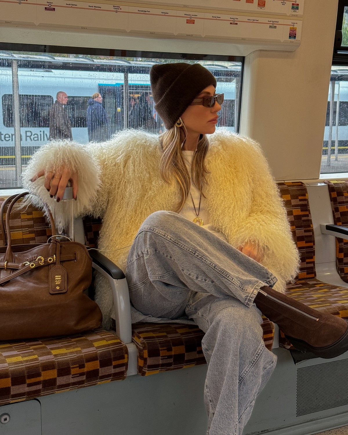 - Фактуры: кожа, замша, деним с эффектом потертости, мех — как натуральный, так и искусственный. Популярна многослойность с разными текстурами.
