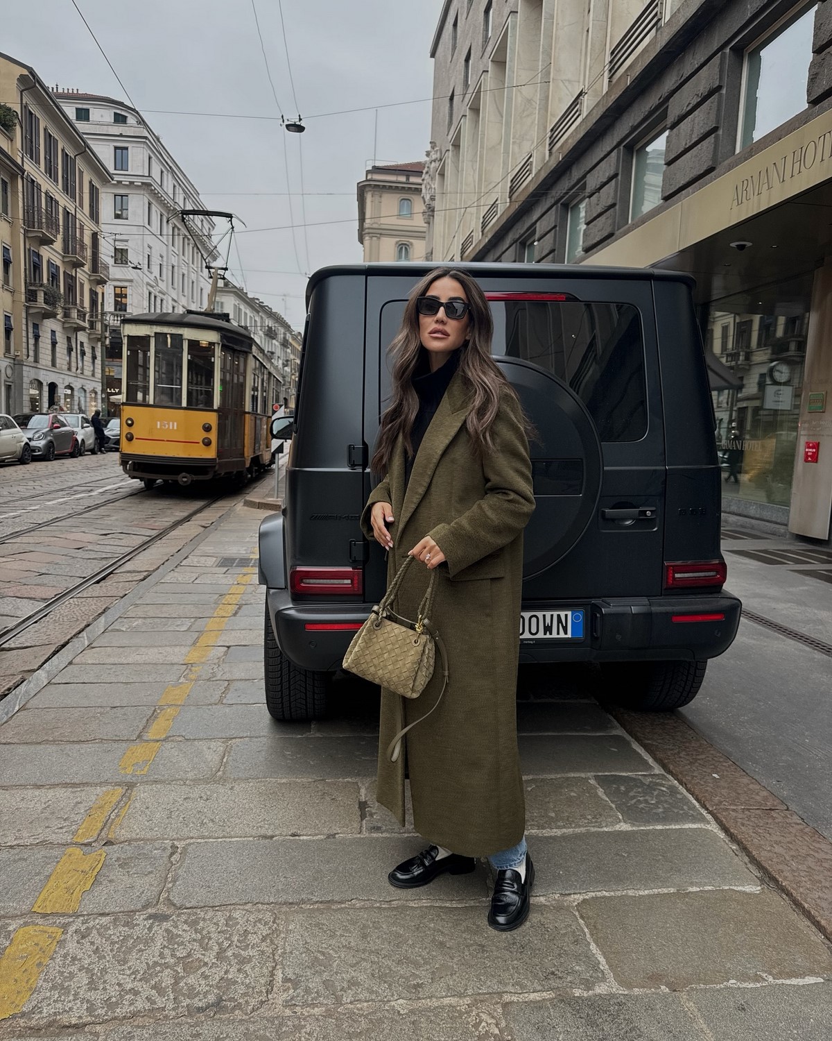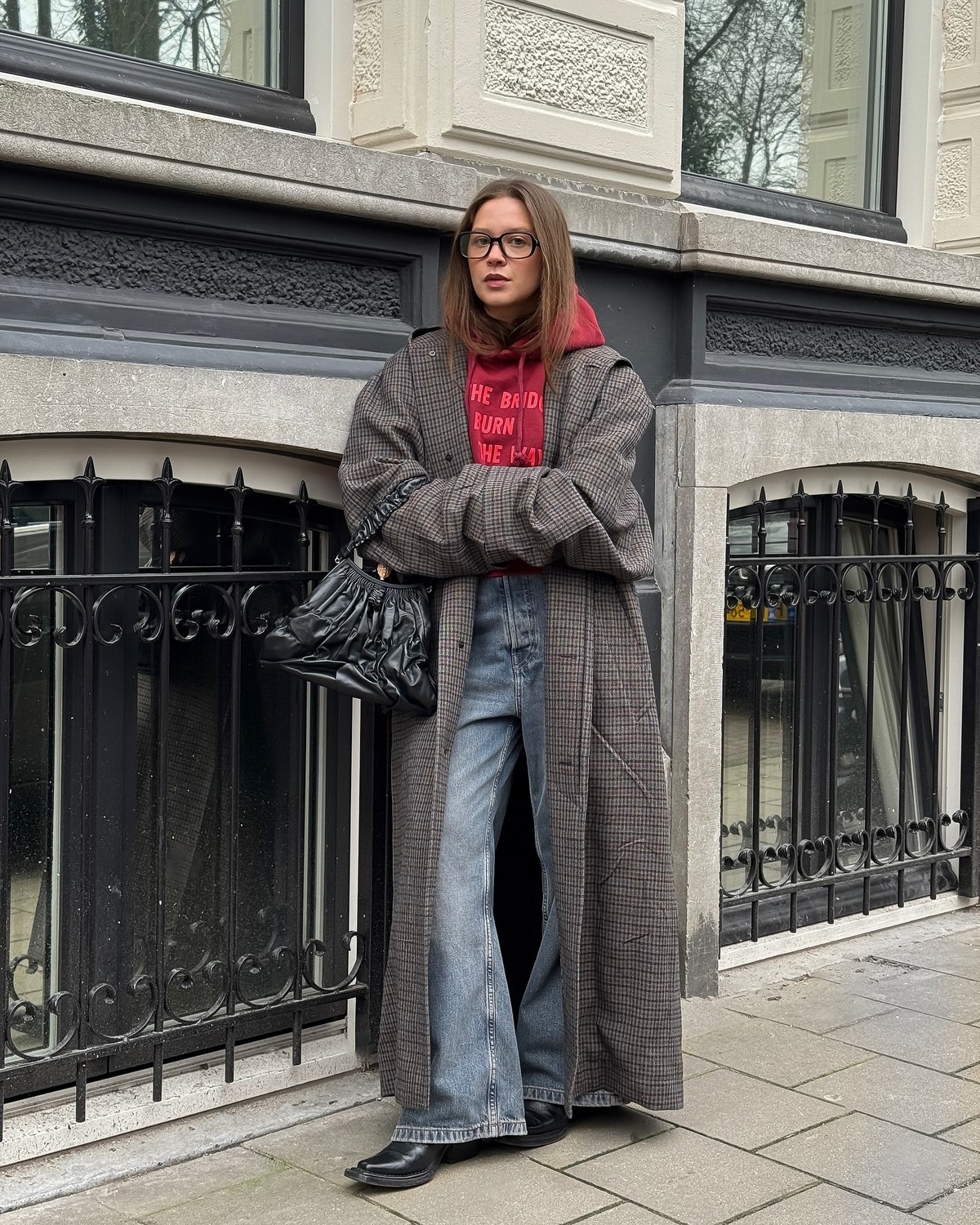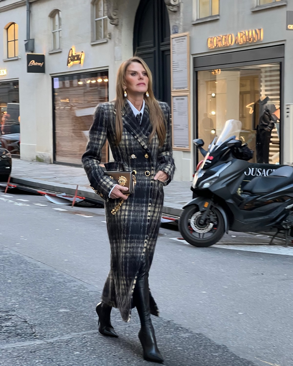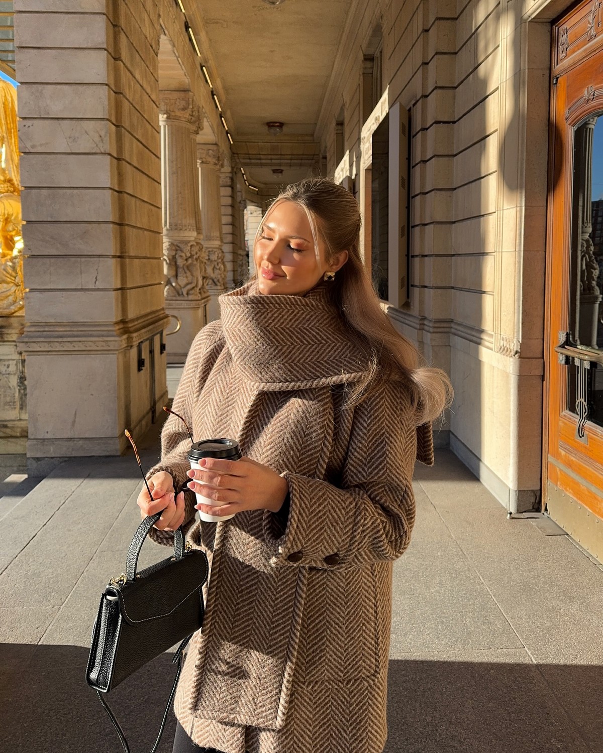 Клетчатый принт — база, которая никогда не выходит из моды. Зимой 2025-2026 он представлен в ярких цветах: зеленом, красном, синем. Пальто в крупную клетку — must-have холодного сезона.