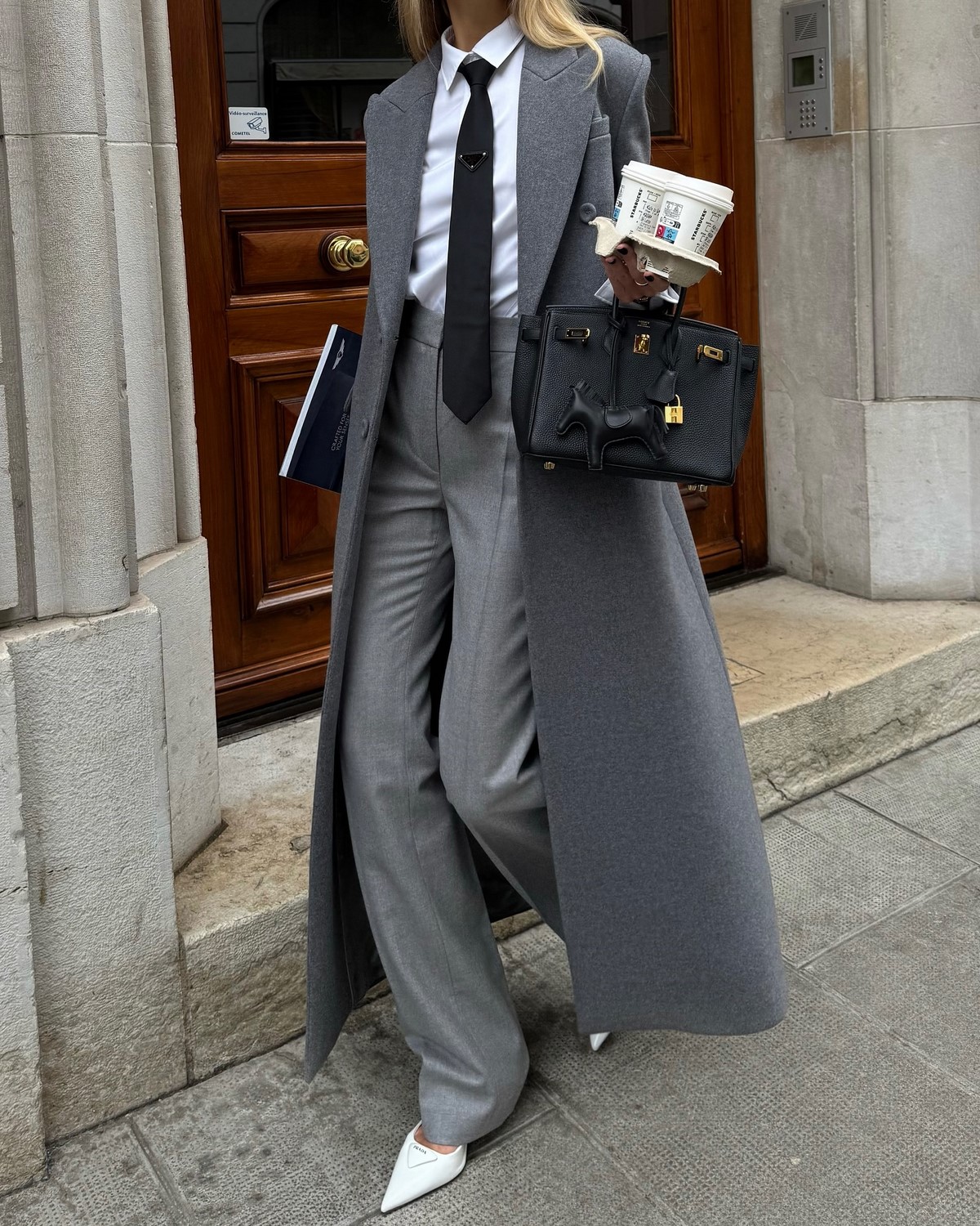 Костюм перестал быть исключительно офисным атрибутом. Зимой 2025-2026 он становится универсальным: его носят с кроссовками, ботфортами и даже массивными дубленками. В тренде модели с полоской и удлиненными жакетами.