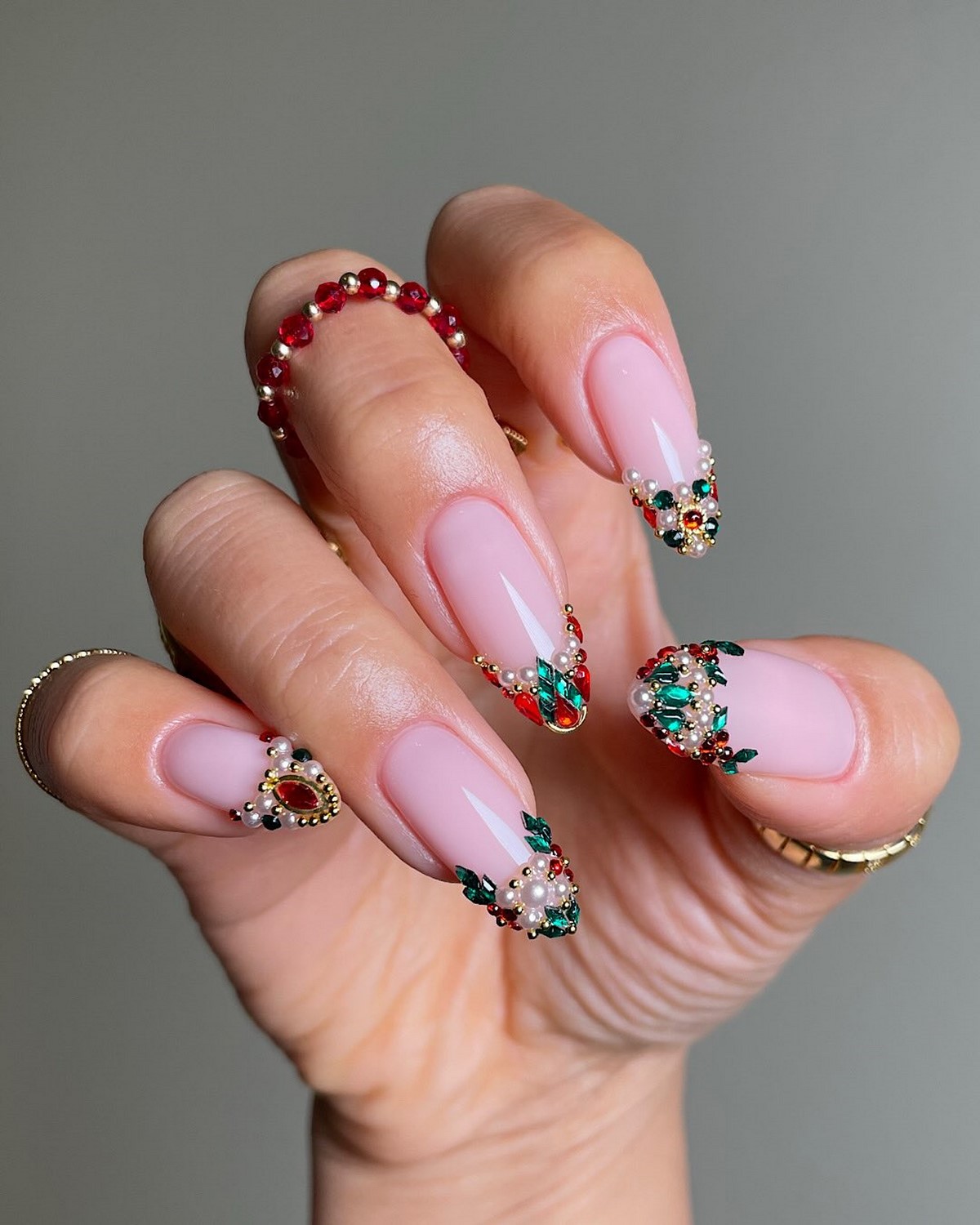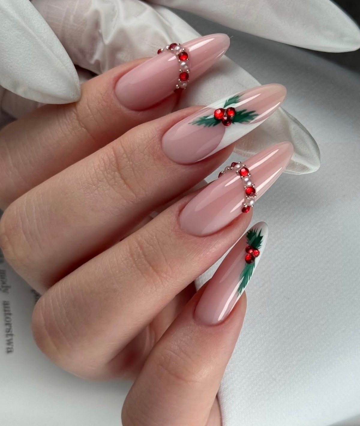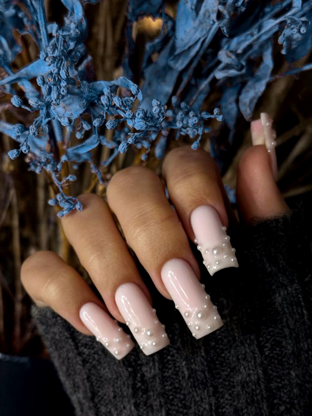 Чаще всего жемчуг сочетается с нюдовыми, молочными и холодными розовыми оттенками. Такой маникюр подчеркивает статусность и идеально подходит для зимних мероприятий и торжеств.