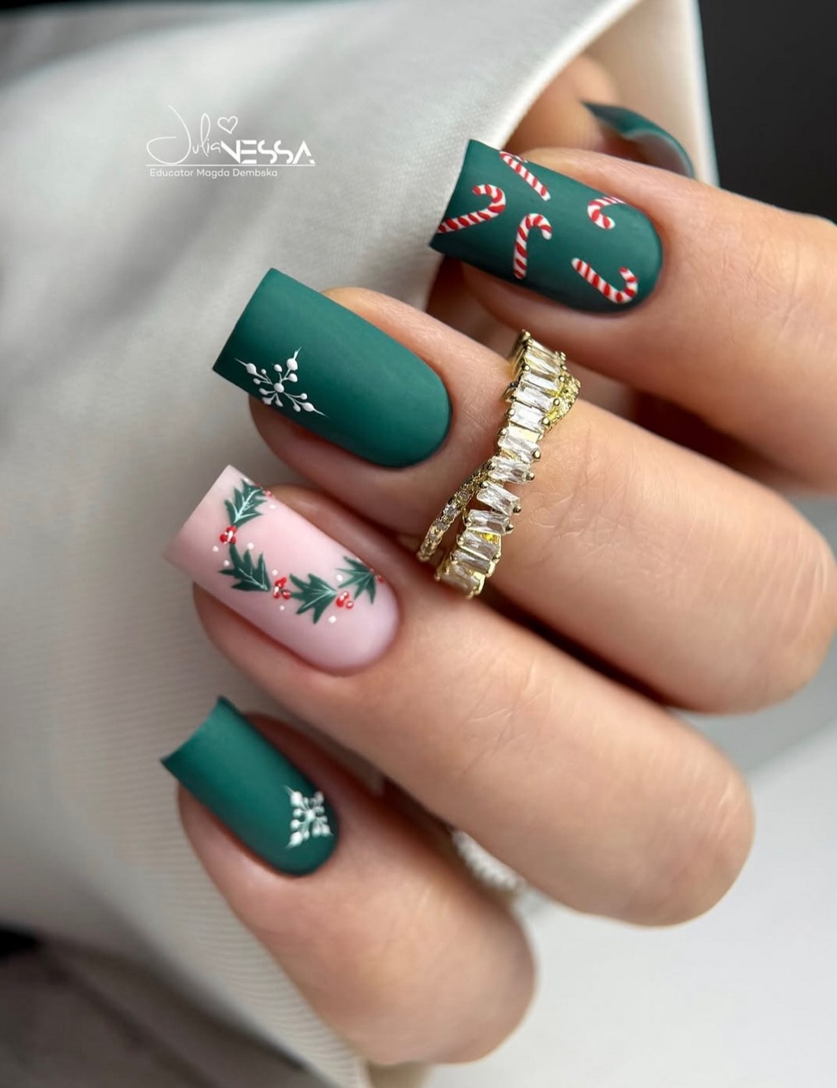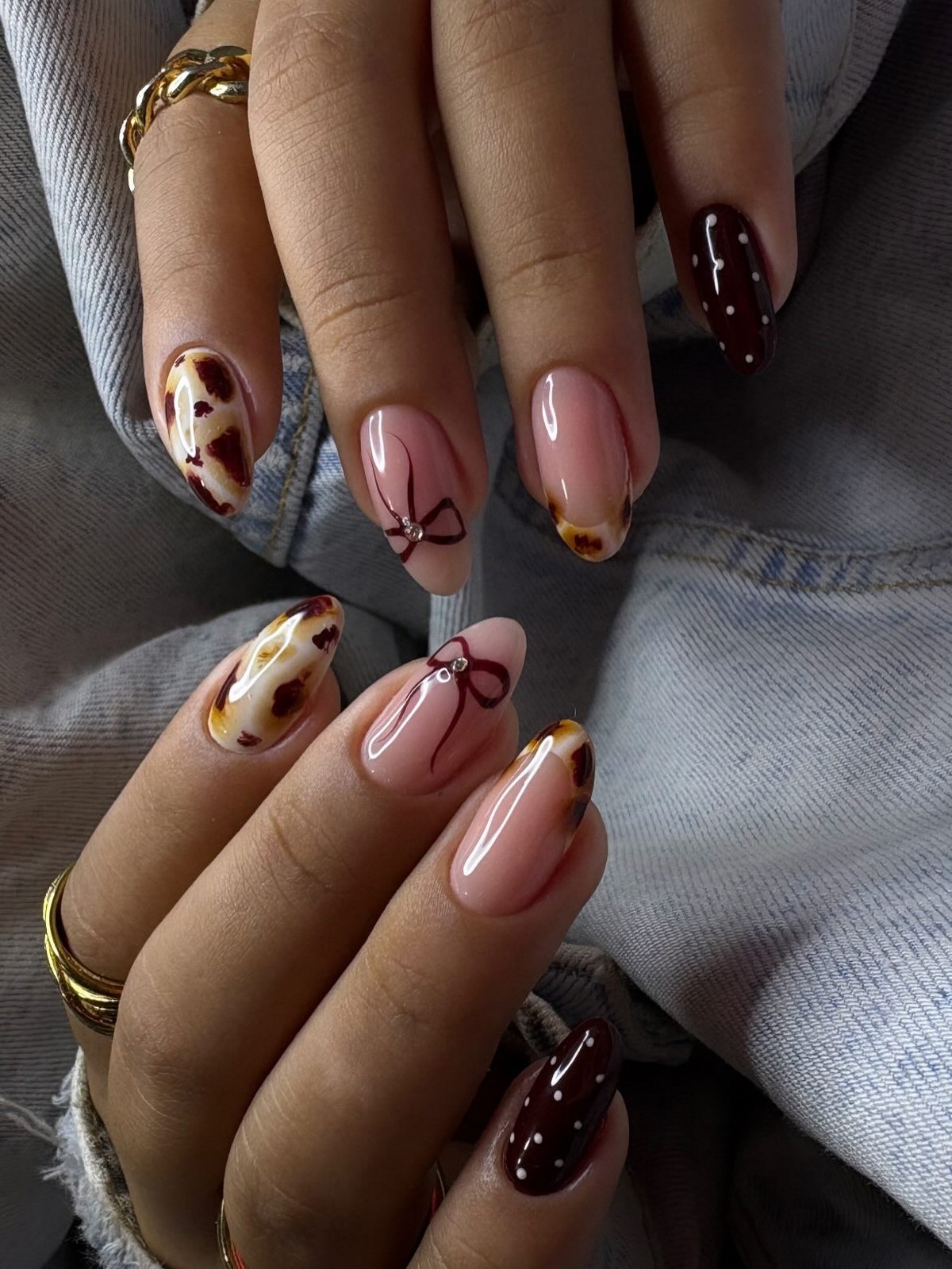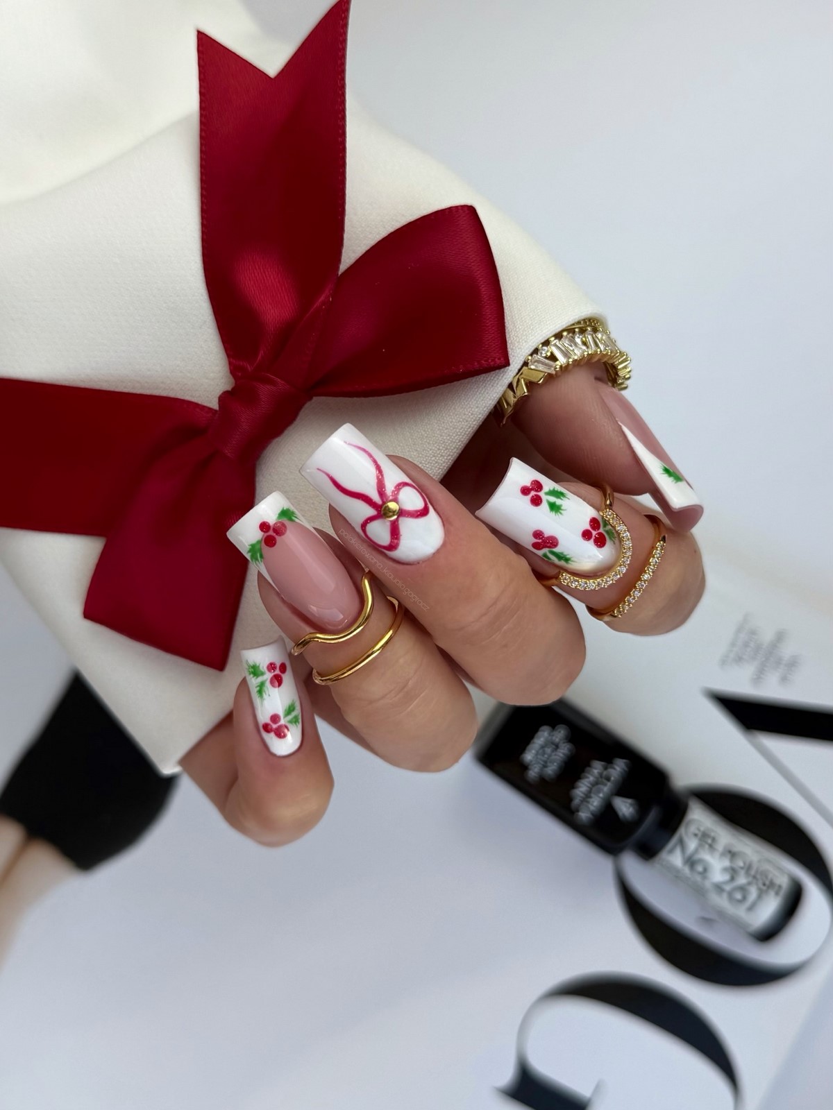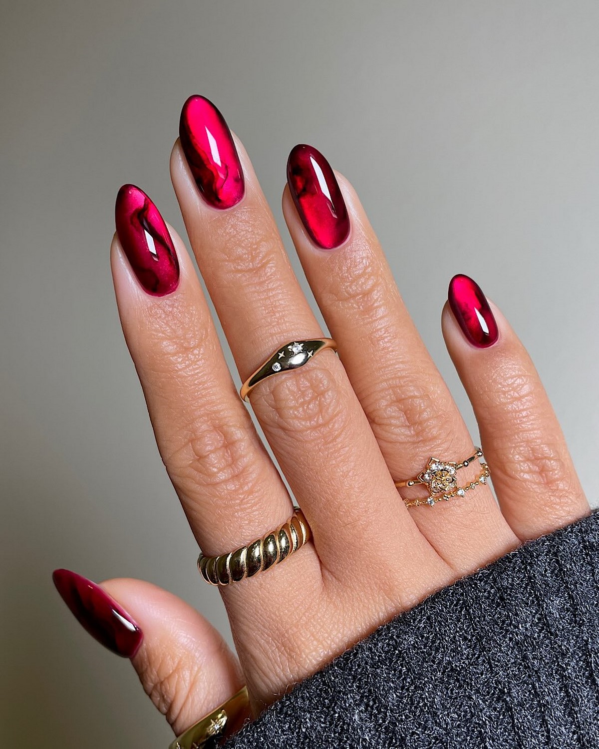 Этот вариант отлично подходит для длинных ногтей, так как позволяет равномерно распределить декор и сохранить баланс. Красный с горошком идеально вписывается в зимние образы с трикотажем, шерстью и плотными тканями.