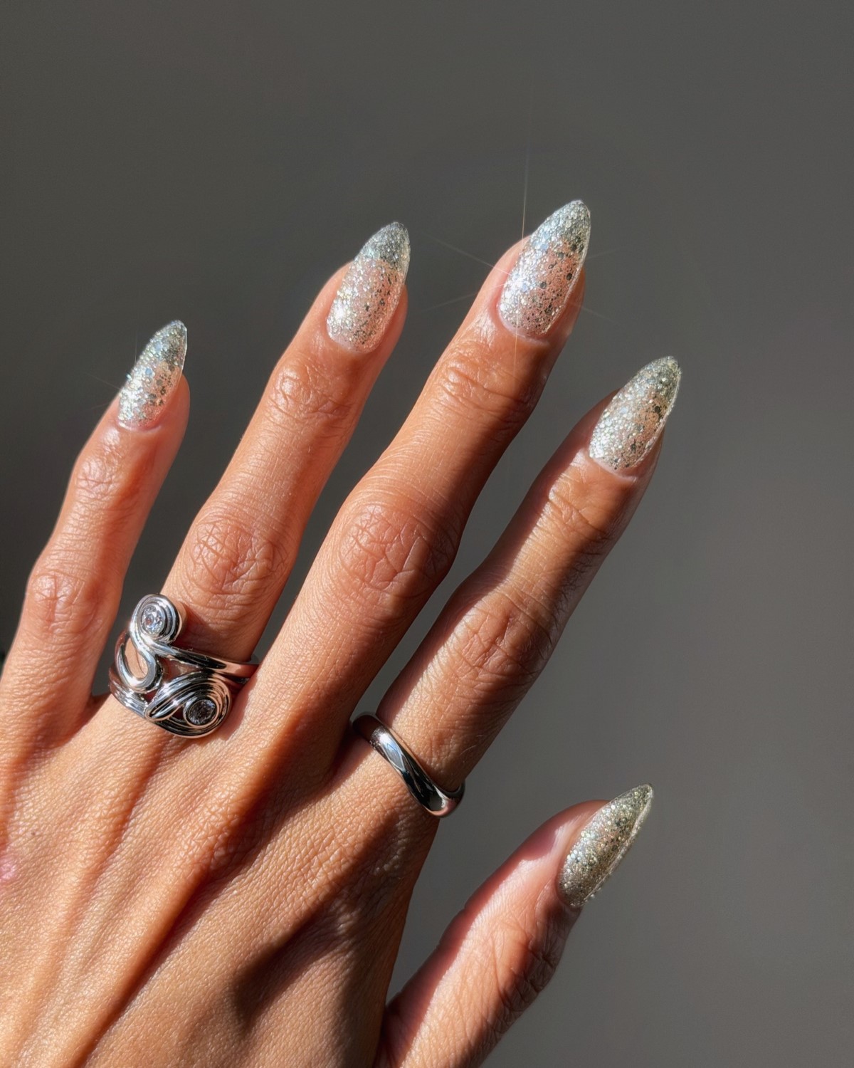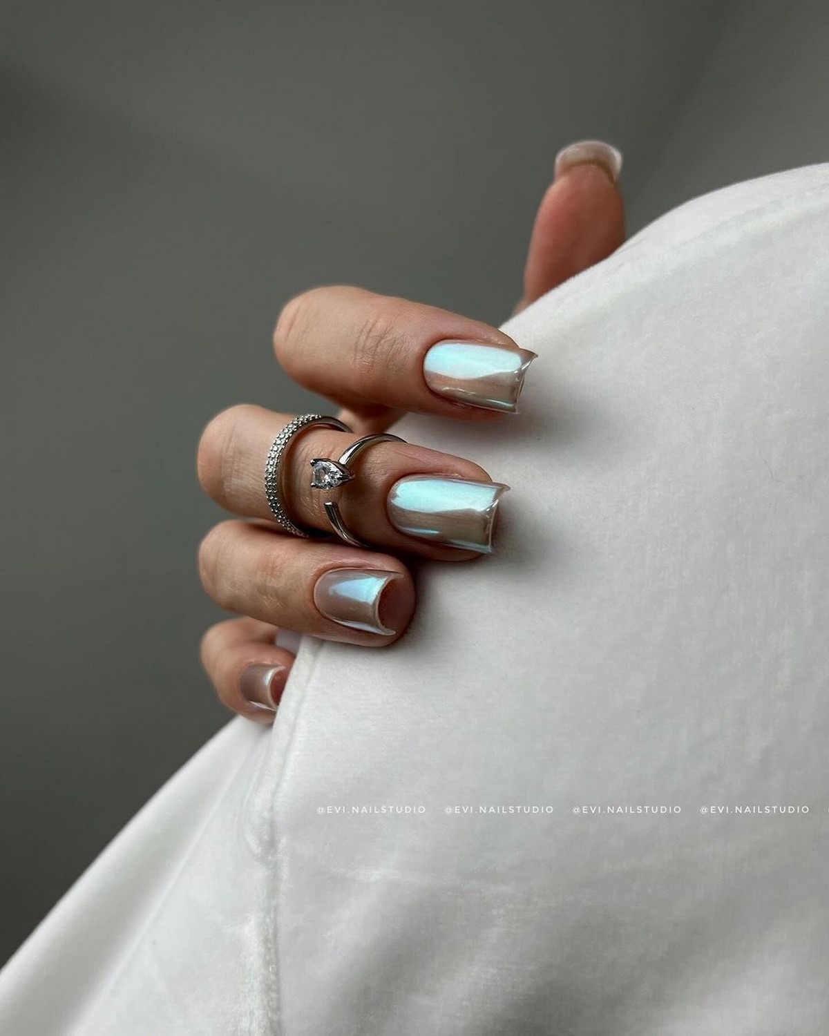 Такой маникюр отлично смотрится как в однотонном исполнении, так и в сочетании с матовыми элементами. Металлик добавляет образу футуристичности и идеально вписывается в зимнюю эстетику.