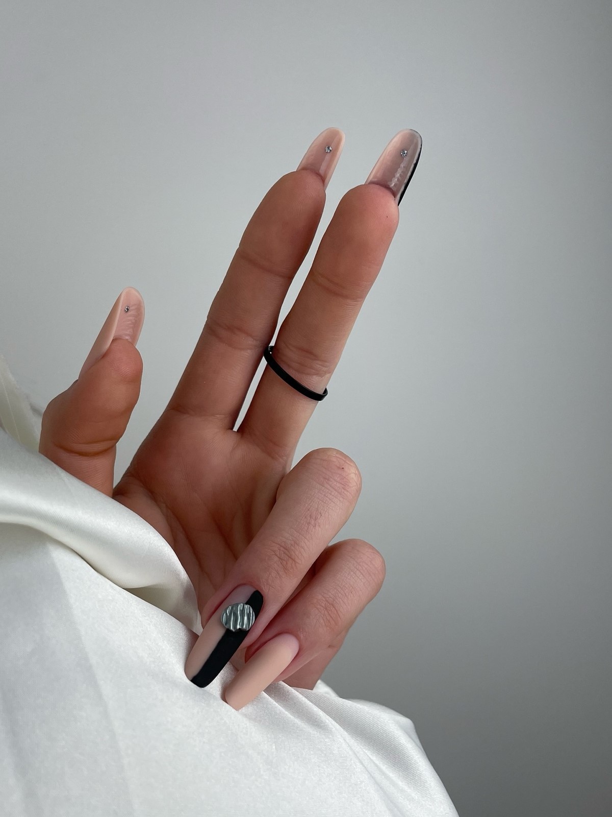 Особенно актуальны молочные, пудровые и дымчато-серые оттенки, которые создают ощущение чистоты и уюта. Такой маникюр легко адаптируется как под повседневные образы, так и под вечерние выходы.