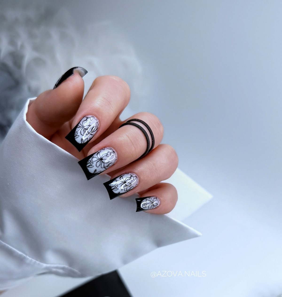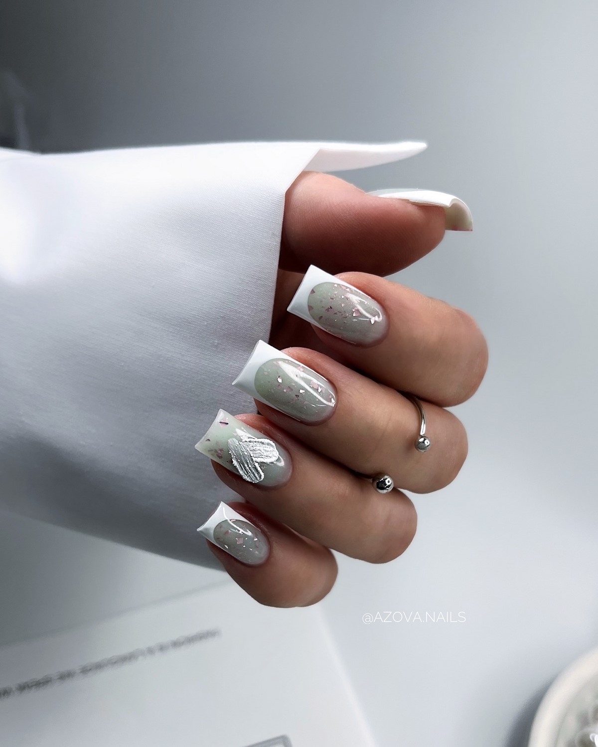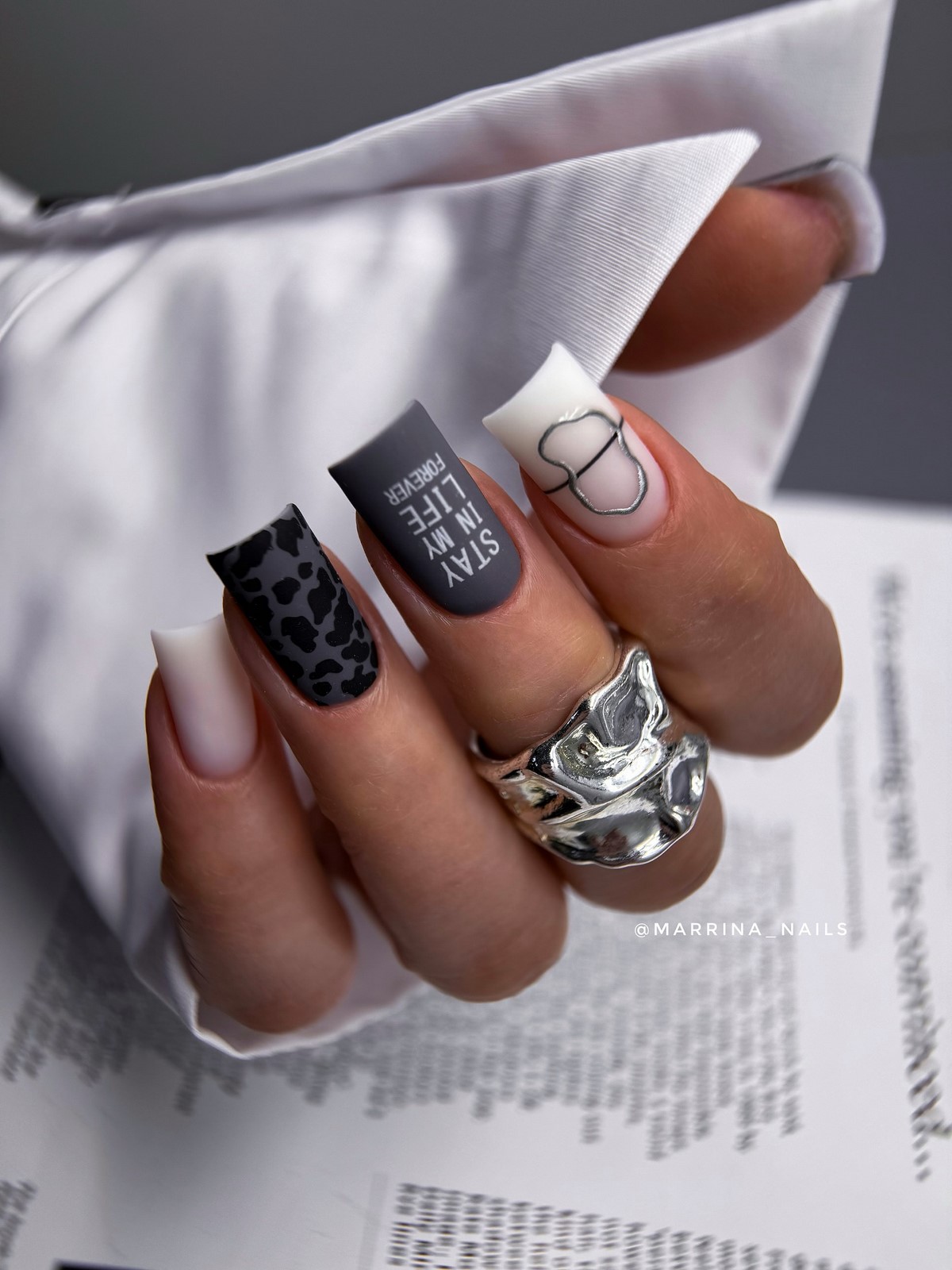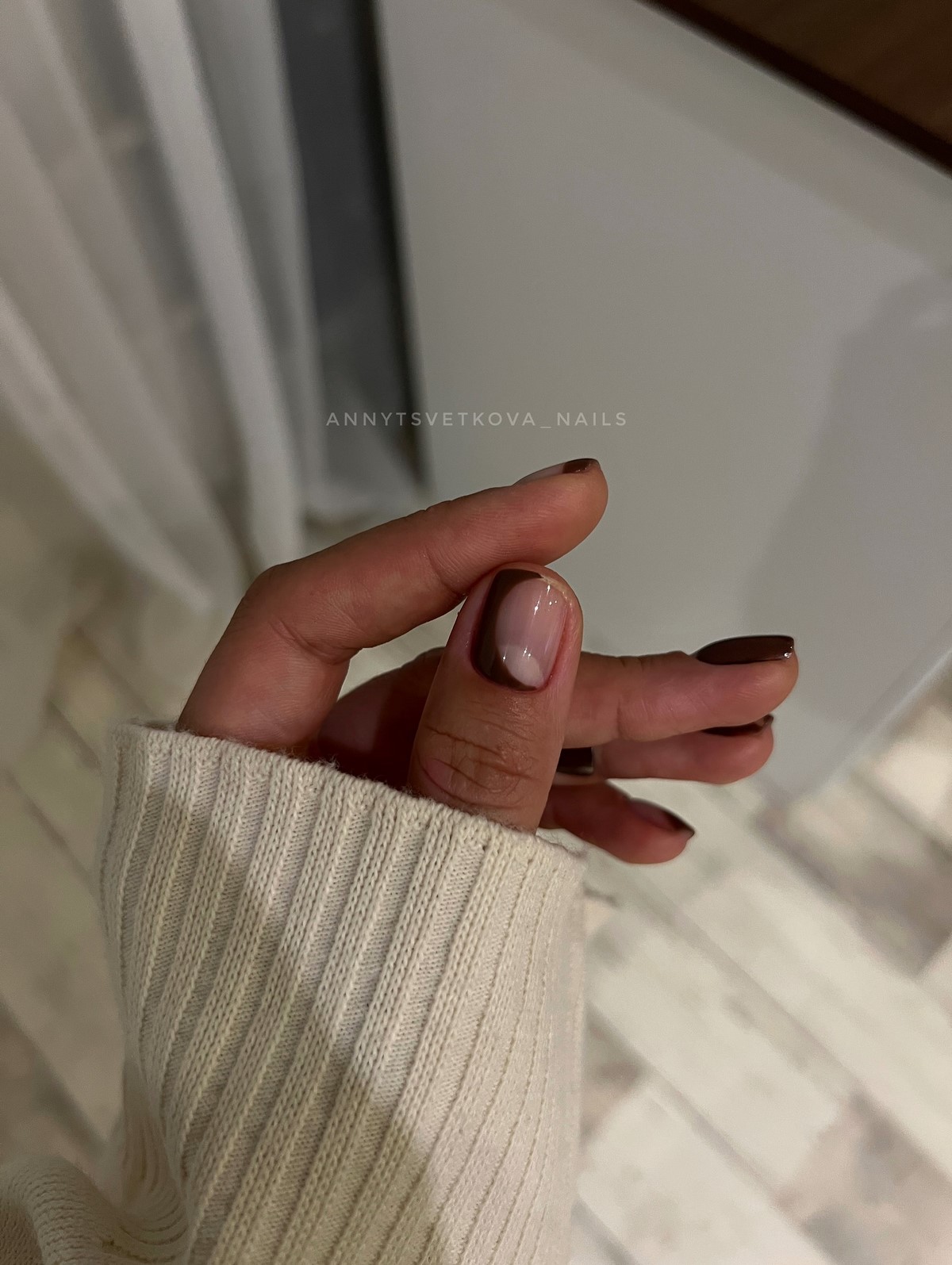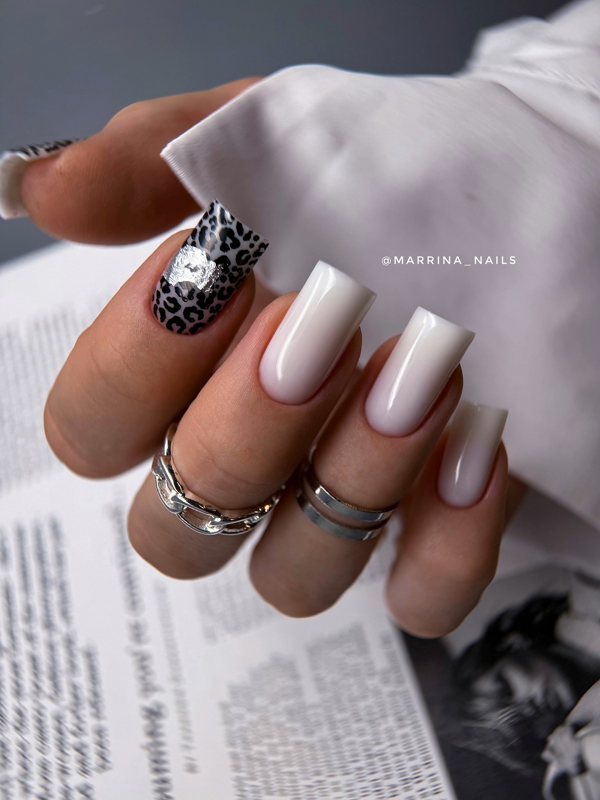 Техника negative space, когда часть ногтя остается прозрачной, продолжает завоевывать популярность. Она делает маникюр более «воздушным» и современным, а также визуально удлиняет ногти. Для зимы мастера предлагают сочетания прозрачных зон с серебряным или белым узором, геометрическими линиями или минималистичными снежинками.