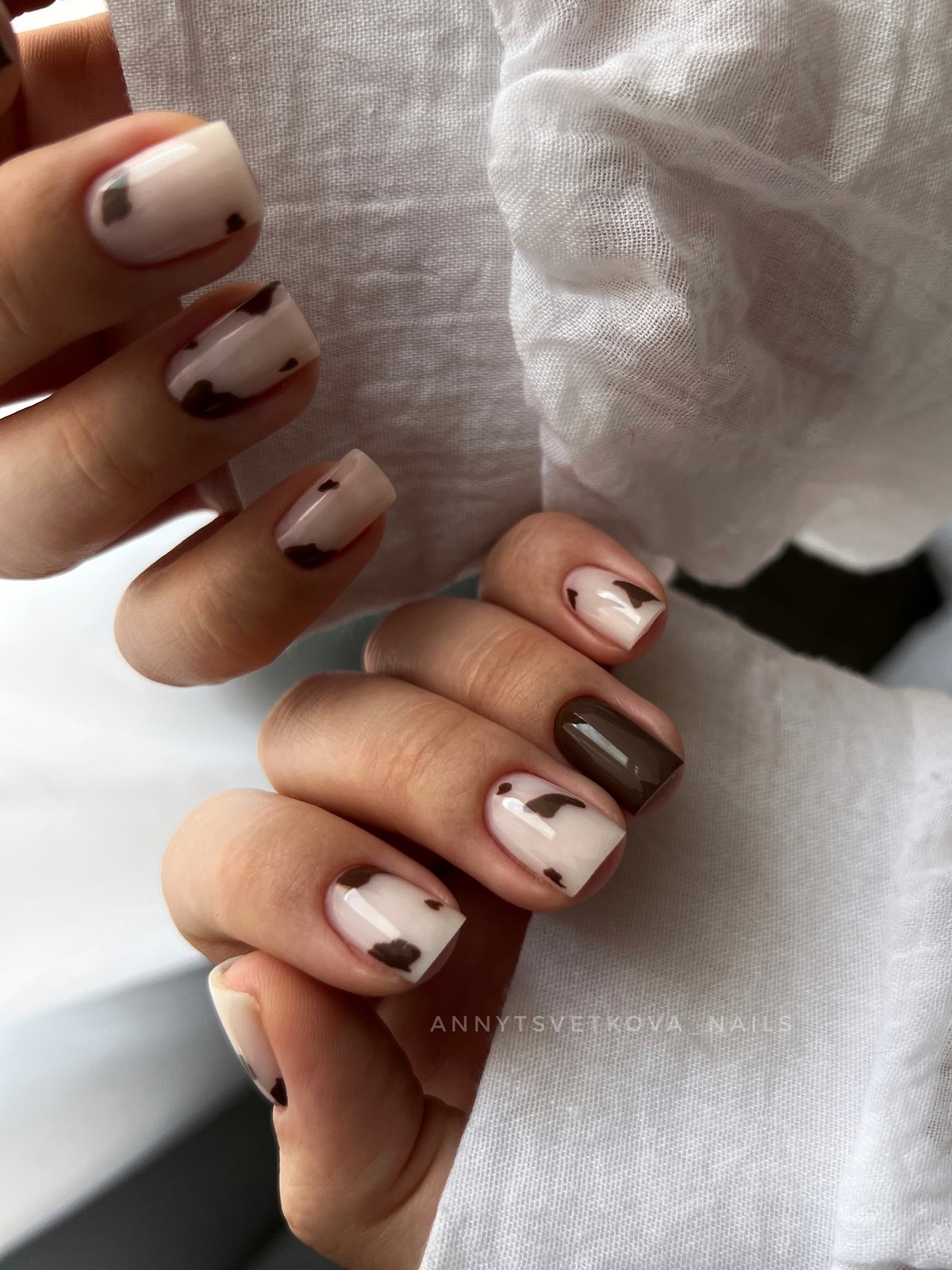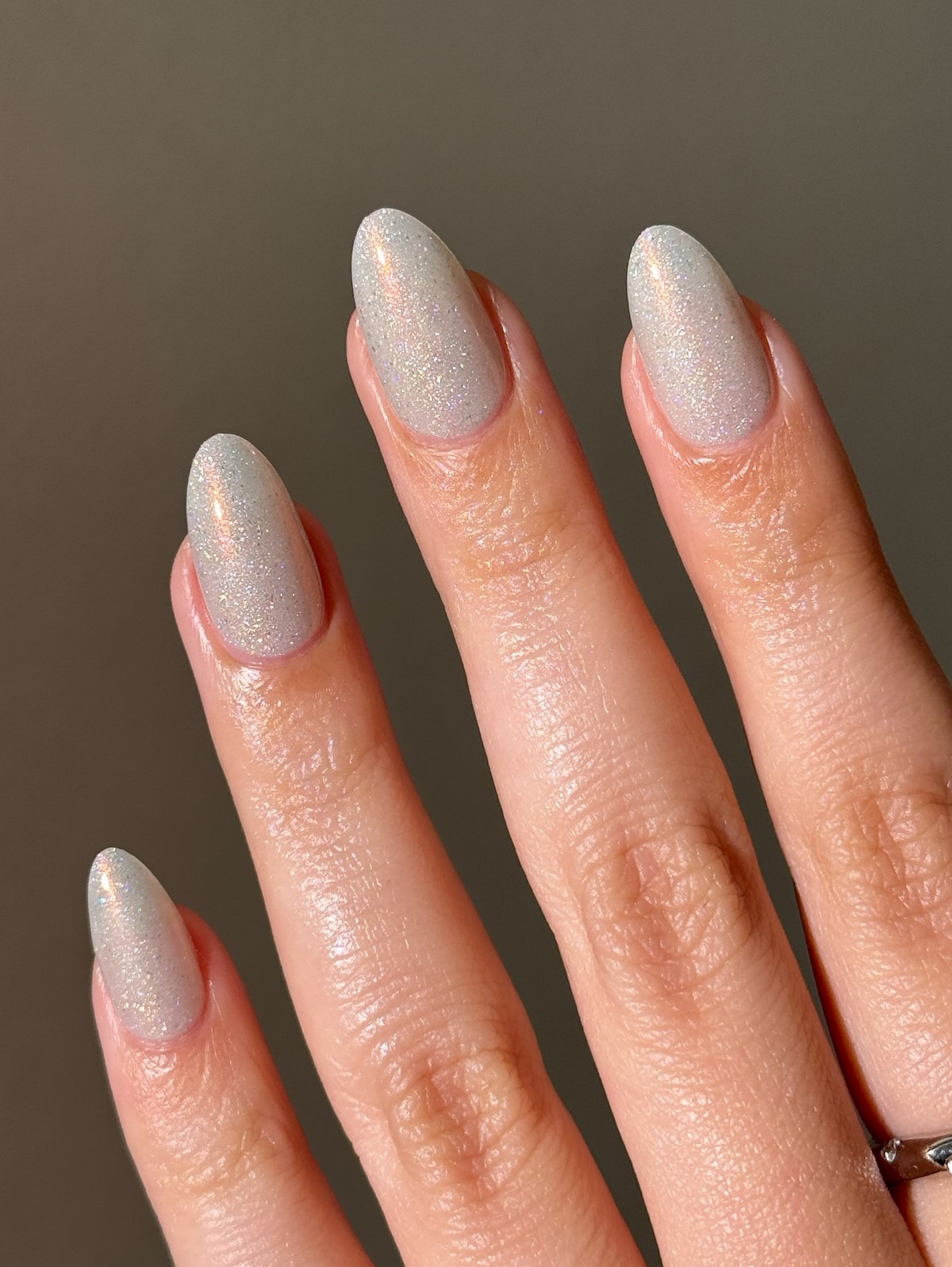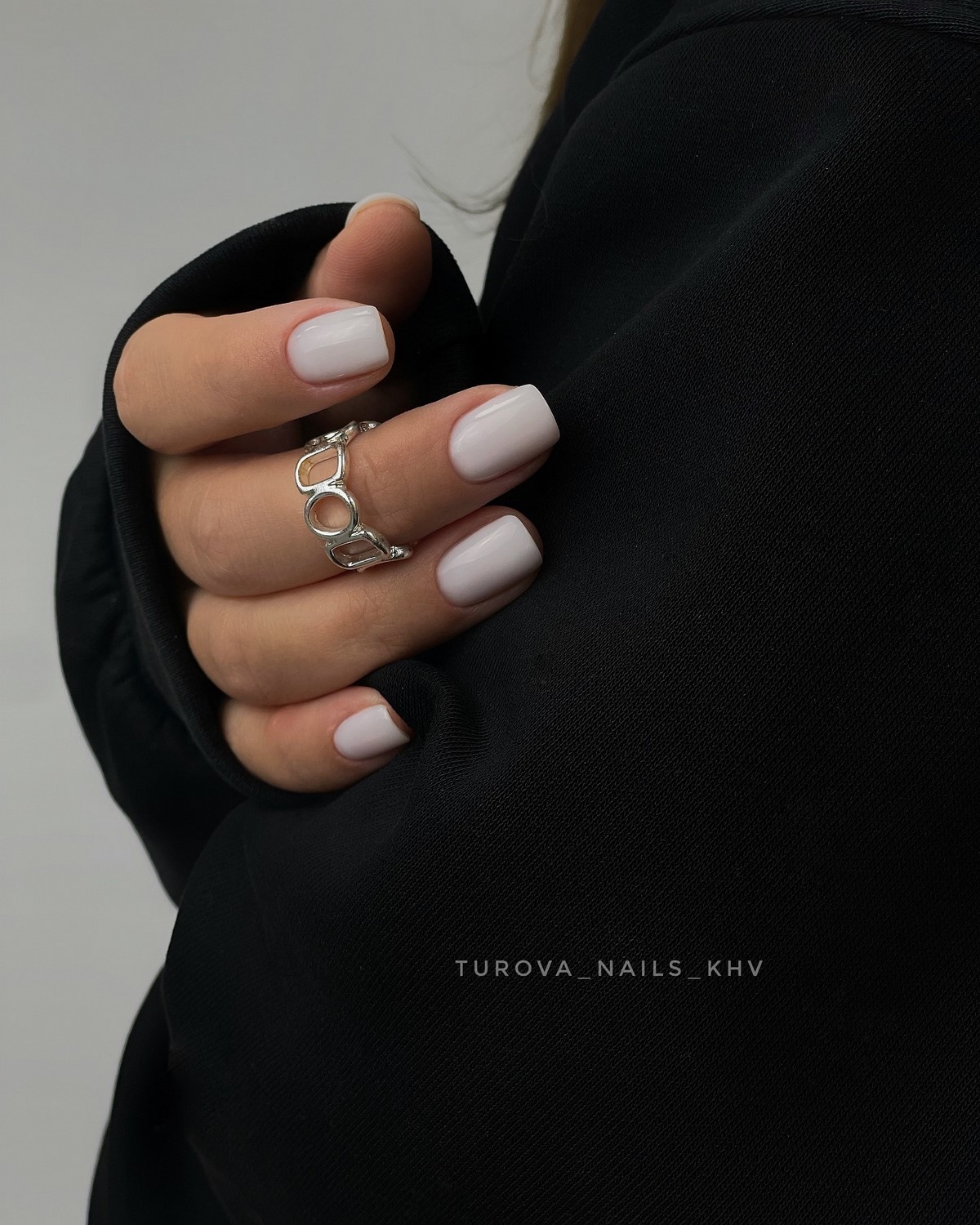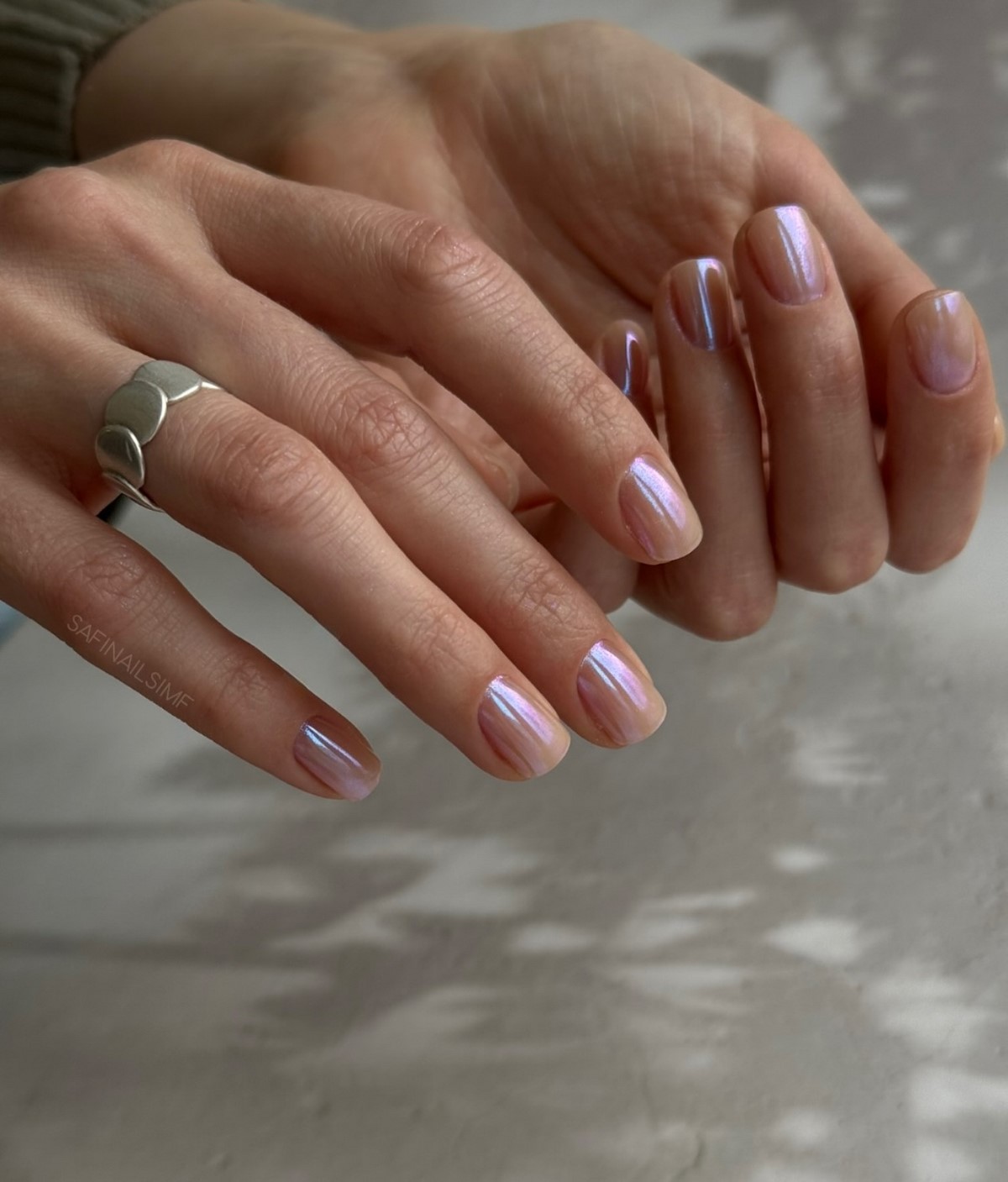 Этот тренд вдохновлен керамическим блеском и эффектом «свежей глазури». Лак с перламутровой или полупрозрачной втиркой придает ногтям мягкое свечение, напоминающее свет, отражающийся на льду. Такой маникюр выглядит дорого и элегантно, подходит как для коротких, так и для длинных ногтей. Его популярность объясняется универсальностью и способностью гармонировать с любым образом.