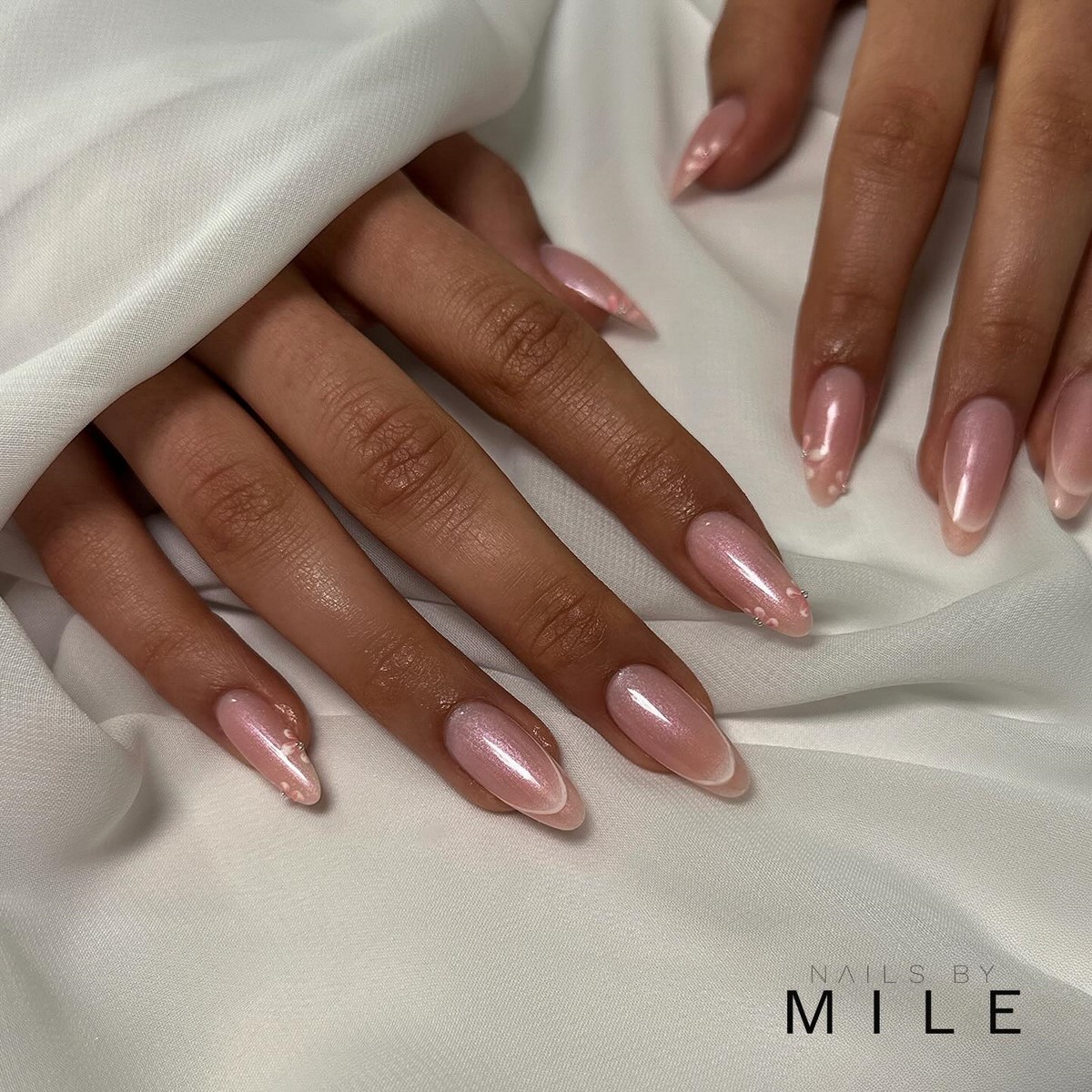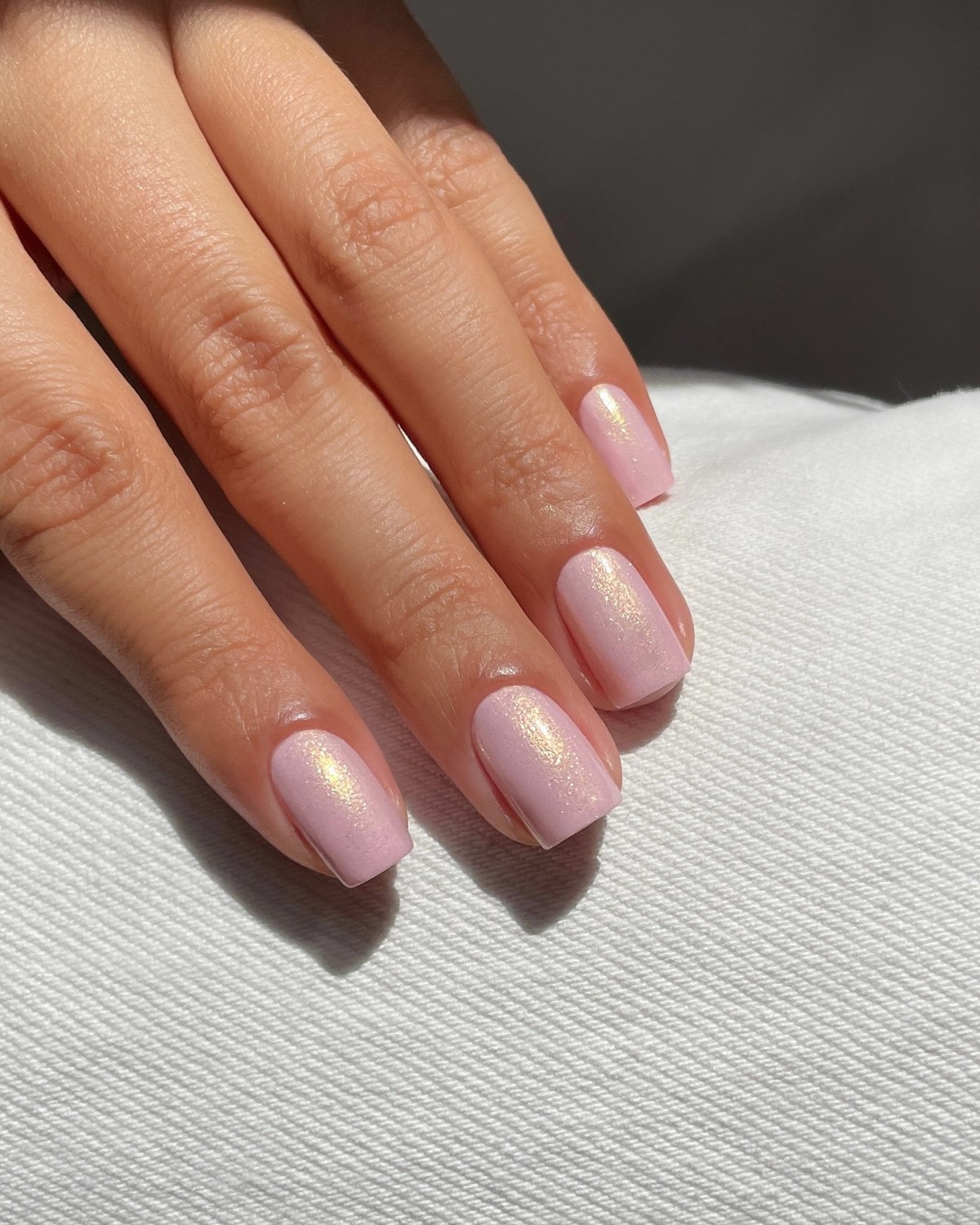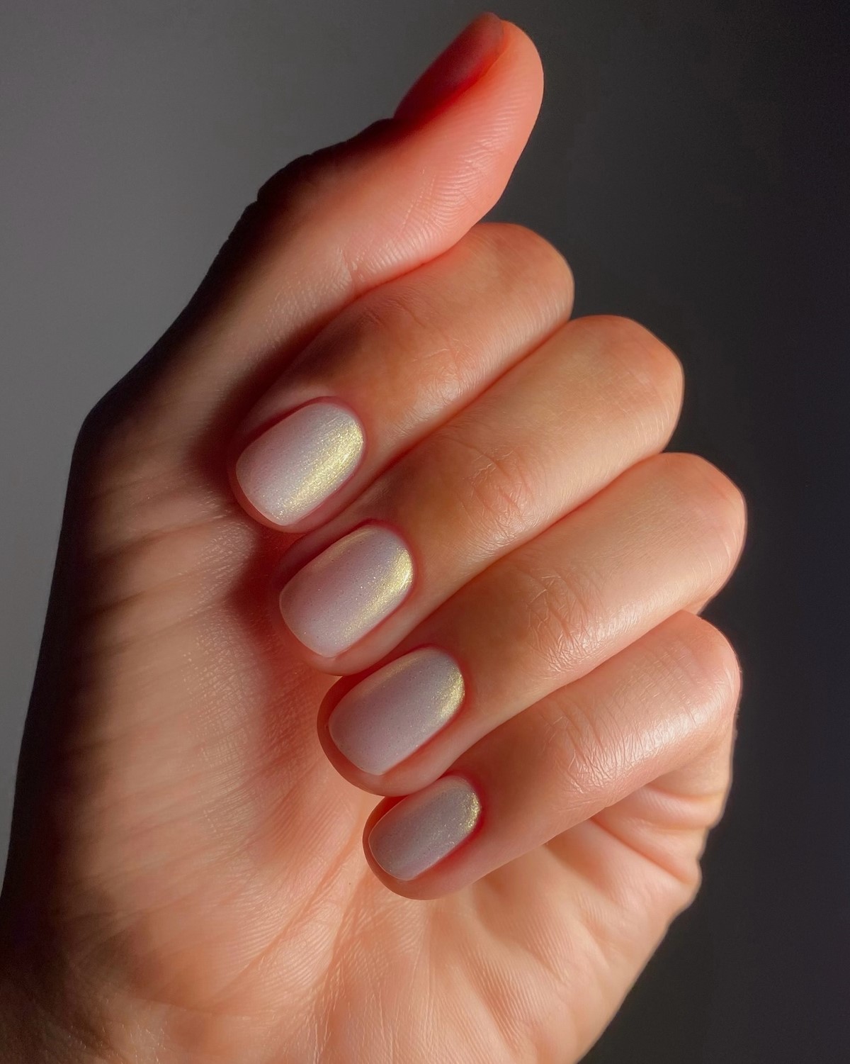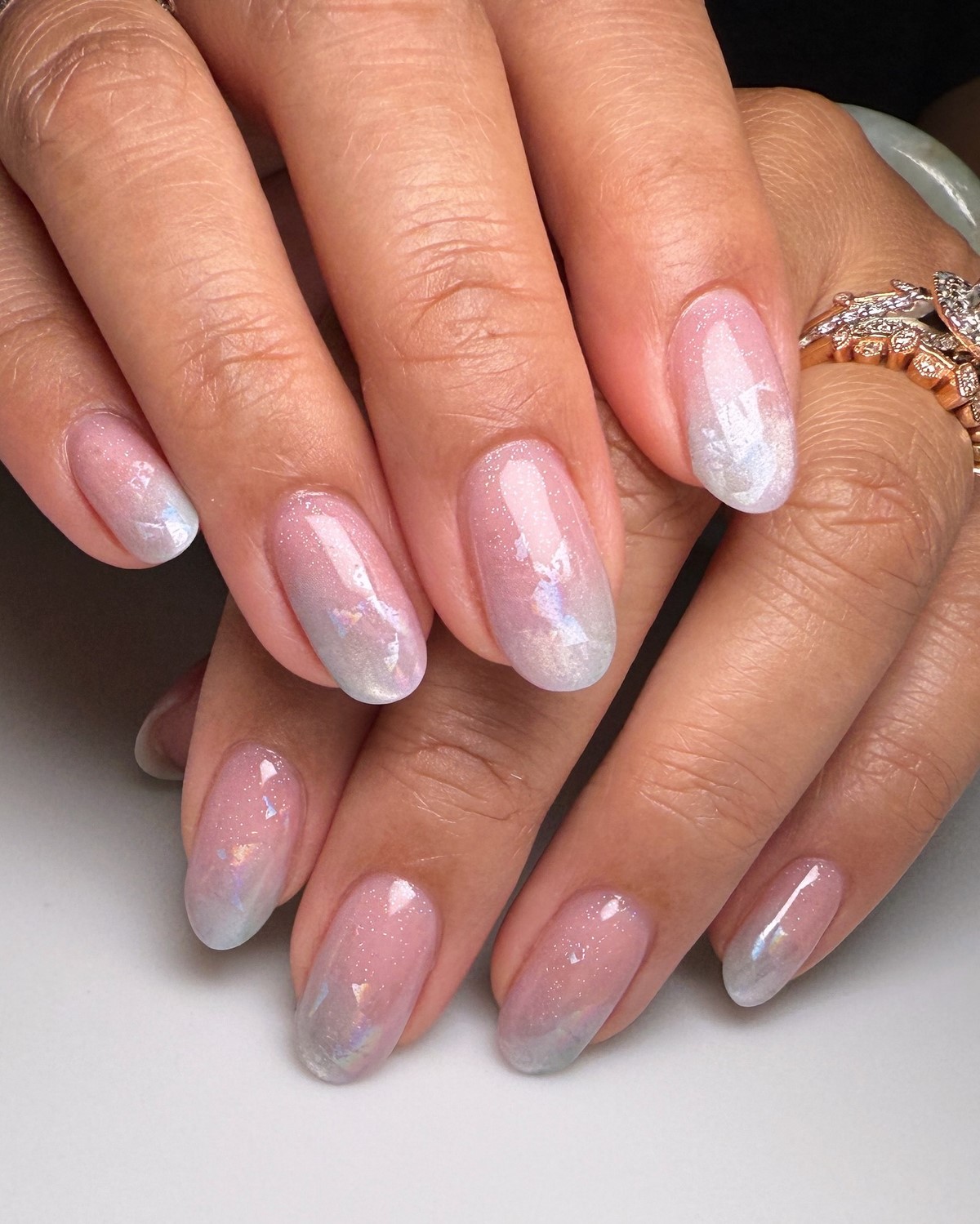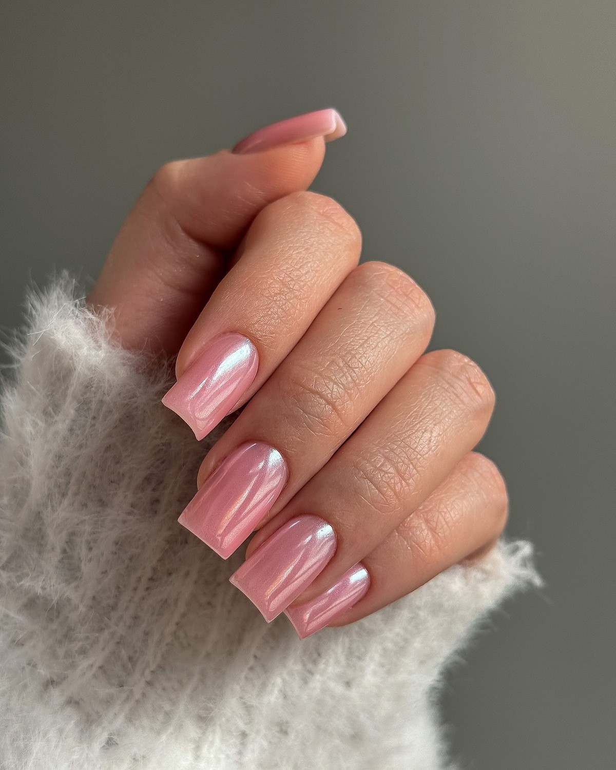 Создать глазированный эффект можно несколькими способами. Самый популярный метод — использование специальных гель-лаков с жемчужным или перламутровым шиммером в сочетании с глянцевым топом. Мастера также применяют технику наслоения полупрозрачных оттенков: сначала наносится базовый нюдовый или молочный тон, затем добавляется слой с микроблестками или шиммером, и завершается все глянцевым топовым покрытием. Для усиления эффекта некоторые nail-мастера используют специальную втирку или пигменты, которые создают характерное сияние изнутри.