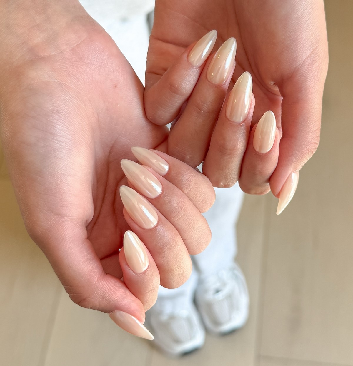 Главная изюминка глазированного маникюра заключается в его уникальной текстуре и визуальном эффекте. Ногти приобретают полупрозрачное сияющее покрытие с деликатным блеском, напоминающим глянцевую глазурь на пончике или керамическую поверхность фарфоровой чашки. В отличие от классического глянцевого покрытия, глазированный финиш создает более мягкое, молочное сияние с легким перламутровым отливом.
